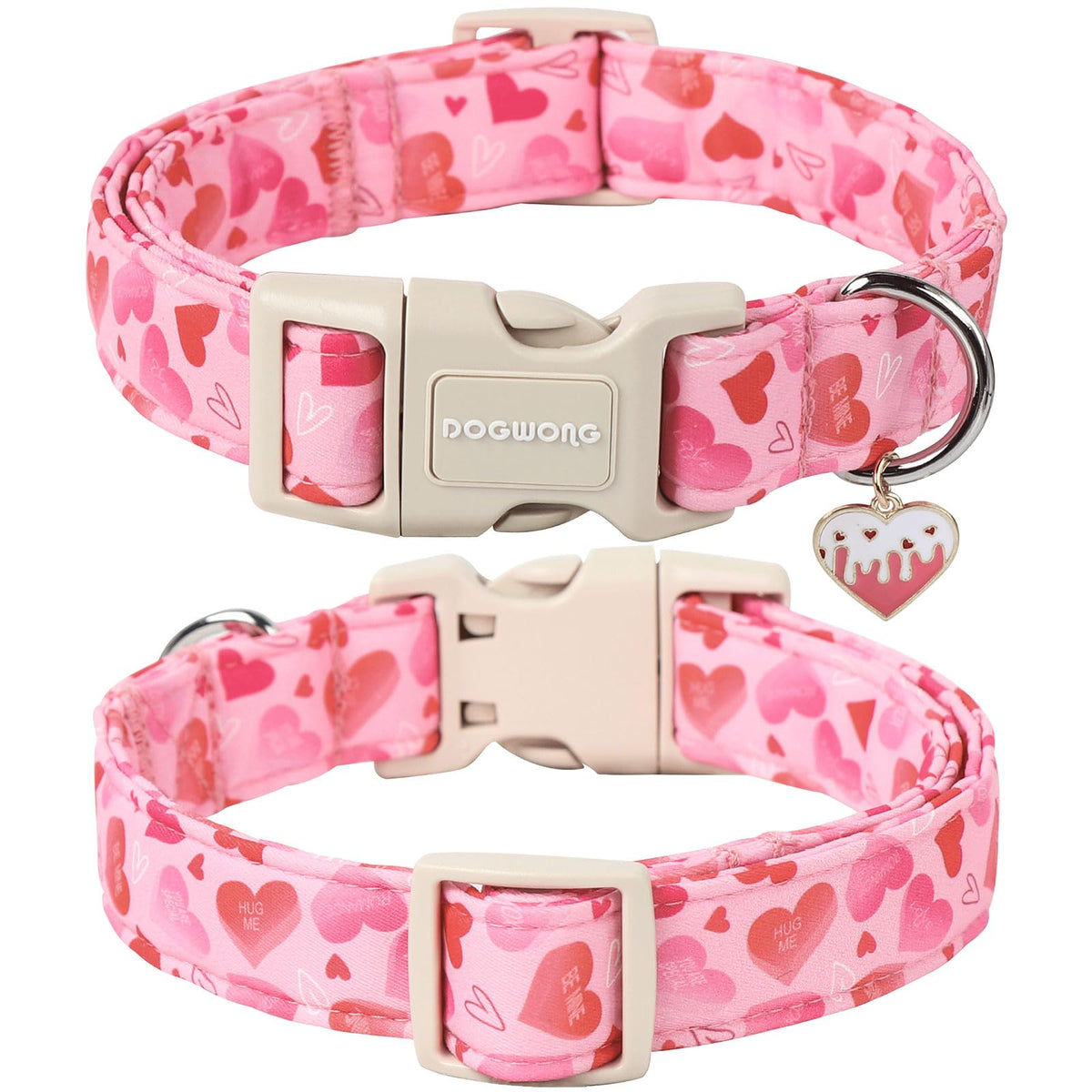 Dogwong Valentine'S Dog Collar, Cute Heart Dog Collars, Adjustable Valentine Pink Heart Pet Collars Design Dog Collar With Quick
