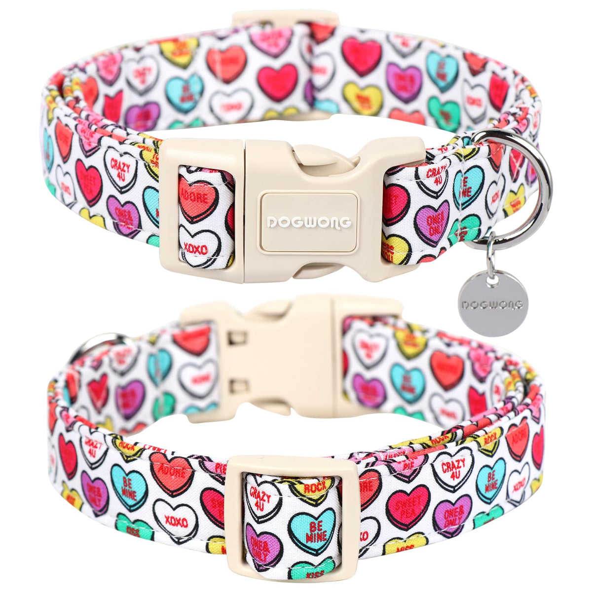 Dogwong Valentine'S Dog Collar, Xl Heart Candy, Soft Cotton, Adjustable, Valentine'S Day Design, Small & Medium Dogs