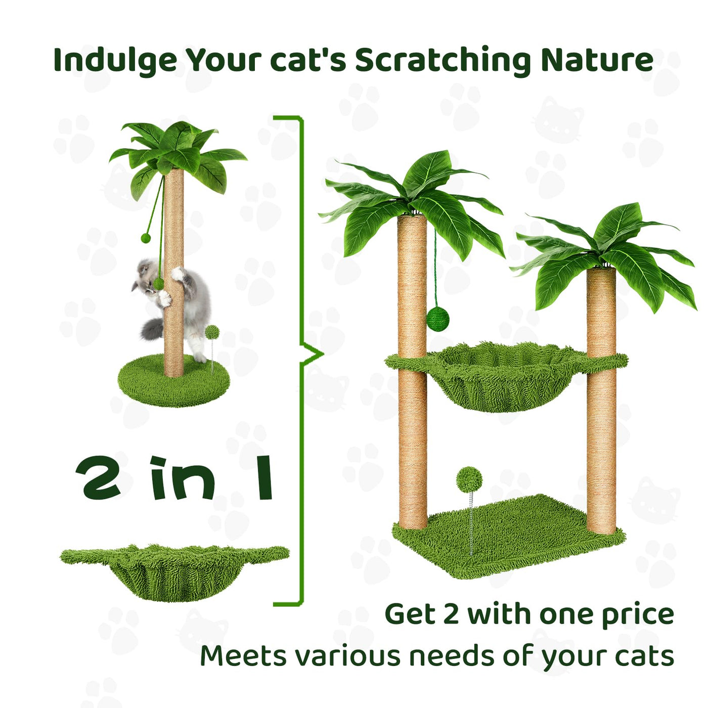 Sturdy, Safe, And Comfortable Cat Tree: Thicker Base Ensures Stability And Security. High-Quality Sisal Protects Furniture While Satisfying Scratching Instincts. Spacious Hammock Offers Ultimate Relaxation. Interactive Dangling Toy And Spring Ball Invoke Hunting Instincts. Easy Assembly With Included Screws.
