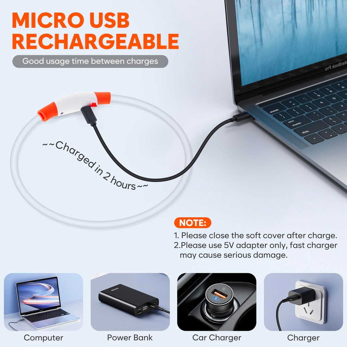 Are You Still Worried About Your Dog'S Safety When Dog Walking At Night? And Troubled By The Dog Glow Collars Sizes Cant Suit For Your Dogs Well? Our Cuttable Tpu Light Up Dog Collars Will Help You Solve This Problem! Features For This Led Dog Collar: *Super Bright In The Dark, 360 Degree Can Be Visible. *One Size Can Suit For All Dogs, That You Can Cut The Length Of This Dog By Yourselves. *Usb Rechargeable, Energy-Saving. No Hassle To Replace The Batteries. *Easy To Use, Just Remove One End Of The Clear Tpu Tube, Then Wear It On Your Dogs, And Push Back Into The Battery Housing. *Easy To Clean, No Easy To Get Dirty. *Water Resistant, Can Used In The Rainy Days, Just Remove It If Swimming. Specification For This Glow In The Dark Dog Collars: * Material: Premium Tpu Tube * Available Color: Red, Pink, Green, Blue, Orange. * Length For Lighted Dog Collar: 27.5 Inch( 70Cm), Can Be Cut. * Glow Modes: Quick Blinking-Slow Flashing-Solid Glow-Off. * Battery Use Time: Charge 2 Hours, Use For 8-10 Hours For Slow Flash; 6-8 Hours For Quick Blink; 2-3 Hours For Steady Glow. Package Including: *1 X Dog Collar Light1 X Usb Charging Cord 100% Satisfaction Guarantee: To Give Our Customers A Pleasant Shopping Experience Is Our Main Goal. If You Are Not 100% Satisfied With Our Waterproof Glowing Dog Collars, Just Contact Us To Have A Full Refund Or Exchange!5.Warning: Choking Hazard Small Parts. Not For Children Under 3 Years. Charing With 5V Usb Adapter Only. Do Not Use Fast Charger Adapter, It May Cause Serious Damages.