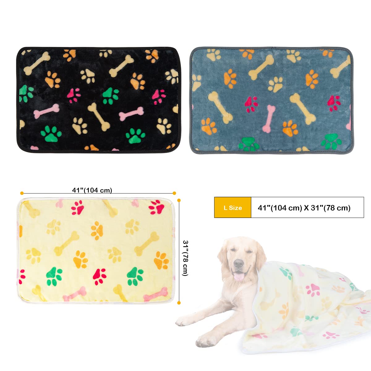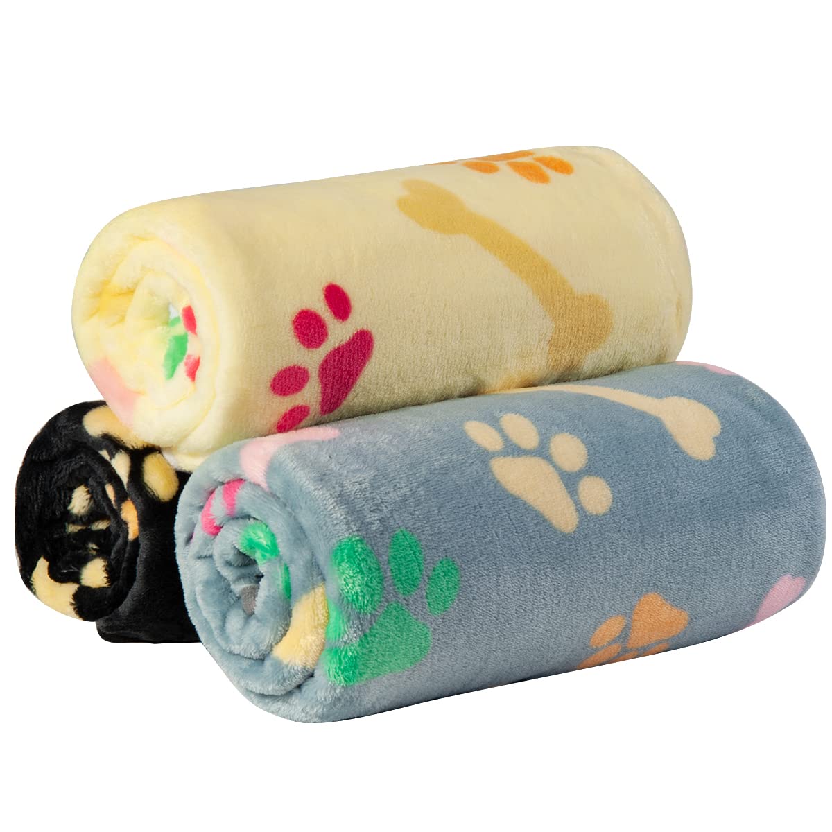 Dono 1 Pack 3 Blankets For Dogs, Soft Fluffy Paw Print Pattern Fleece Pet Blanket Warm Sleep Mat Cute Print Design Puppy Kitten Blanket Doggy Mat For Dog Cat Kitten Doggy