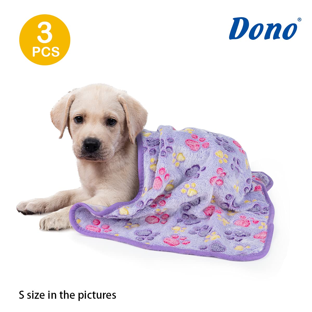 Dono 1 Pack 3 Dog Blankets, Soft Fluffy Fleece Paw Print Blankets For Small Medium Dogs, Pet Blanket Washable Sleep Couch Bed Mat, Puppy Kitten Cat Throw Blankets For Girl Dogs