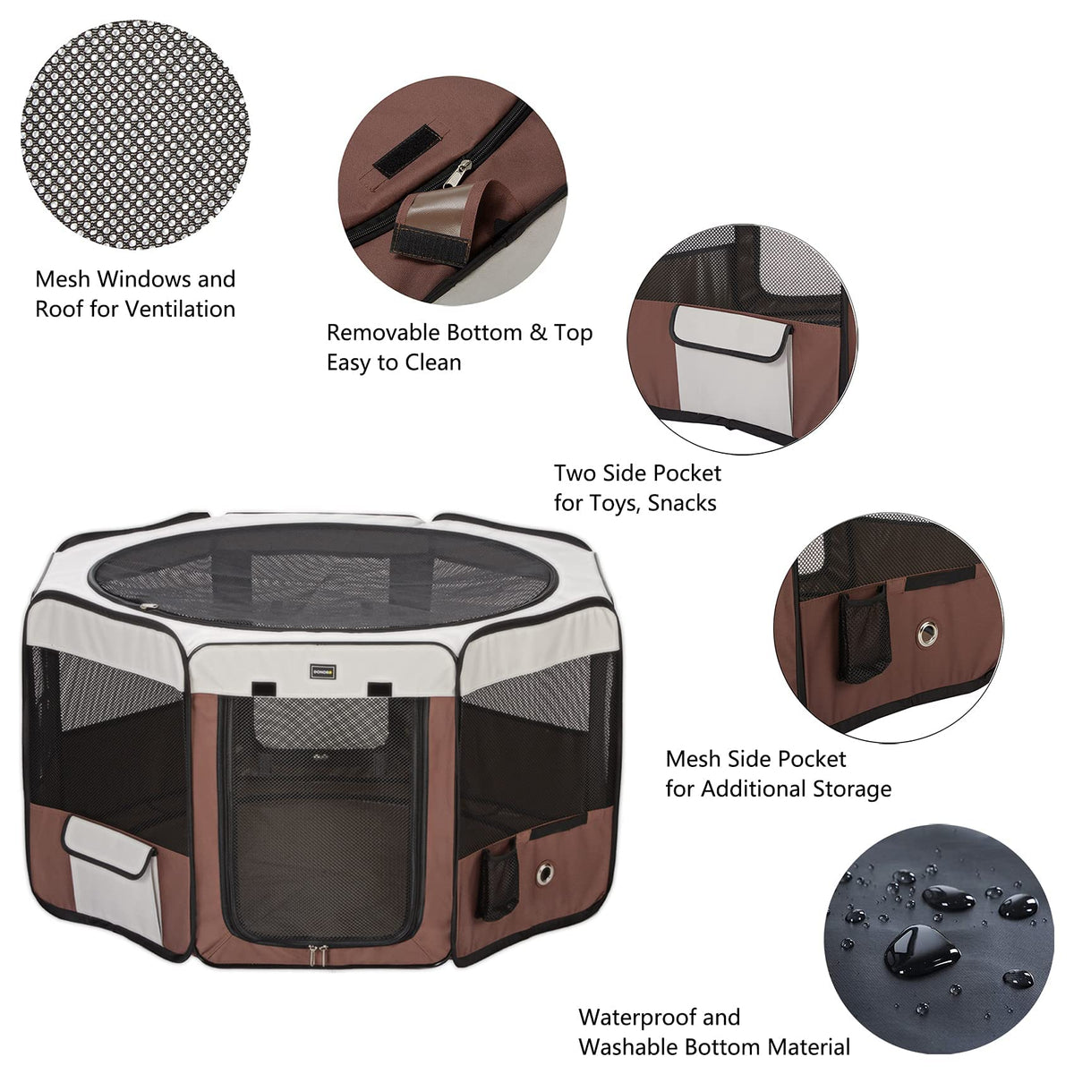 Donoro Portable Pet Play Pens For Small Dog/Cat/Rabbit/Chicks, Indoor/Outdoor With Carring Case, Removable Zipper Top And Bottom