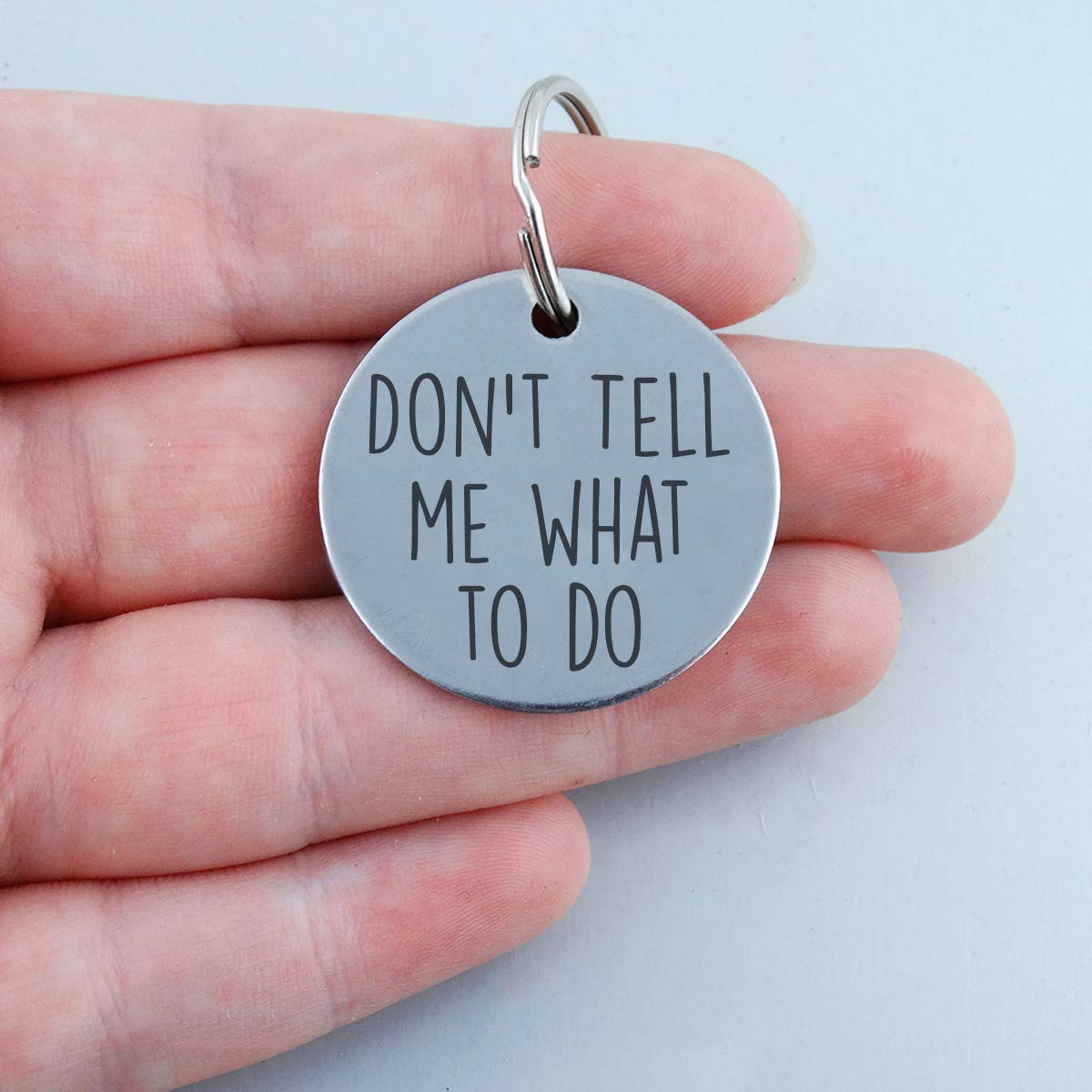 Front Of The Tag Is Engraved With ''Don'T Tell Me What To Do''. The Back Is Engraved With Personalized Text Of Your Choice. The Id Tag Is Made Of High-Quality Stainless Steel. Includes 20Mm Split Ring. Individually Engraved In Our California Office. We Offer Professional, Quality Engraving Using A High-Powered Laser, Creating A Deep Cut Into The Metal Resulting In Long Lasting Designs. Tag Measures 30Mm X 30Mm (1 3/16'' X 1 3/16'')