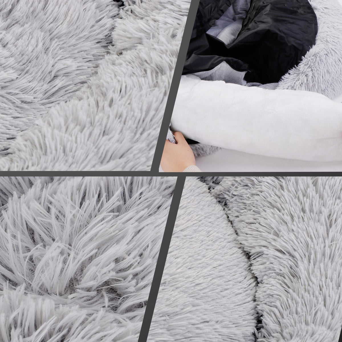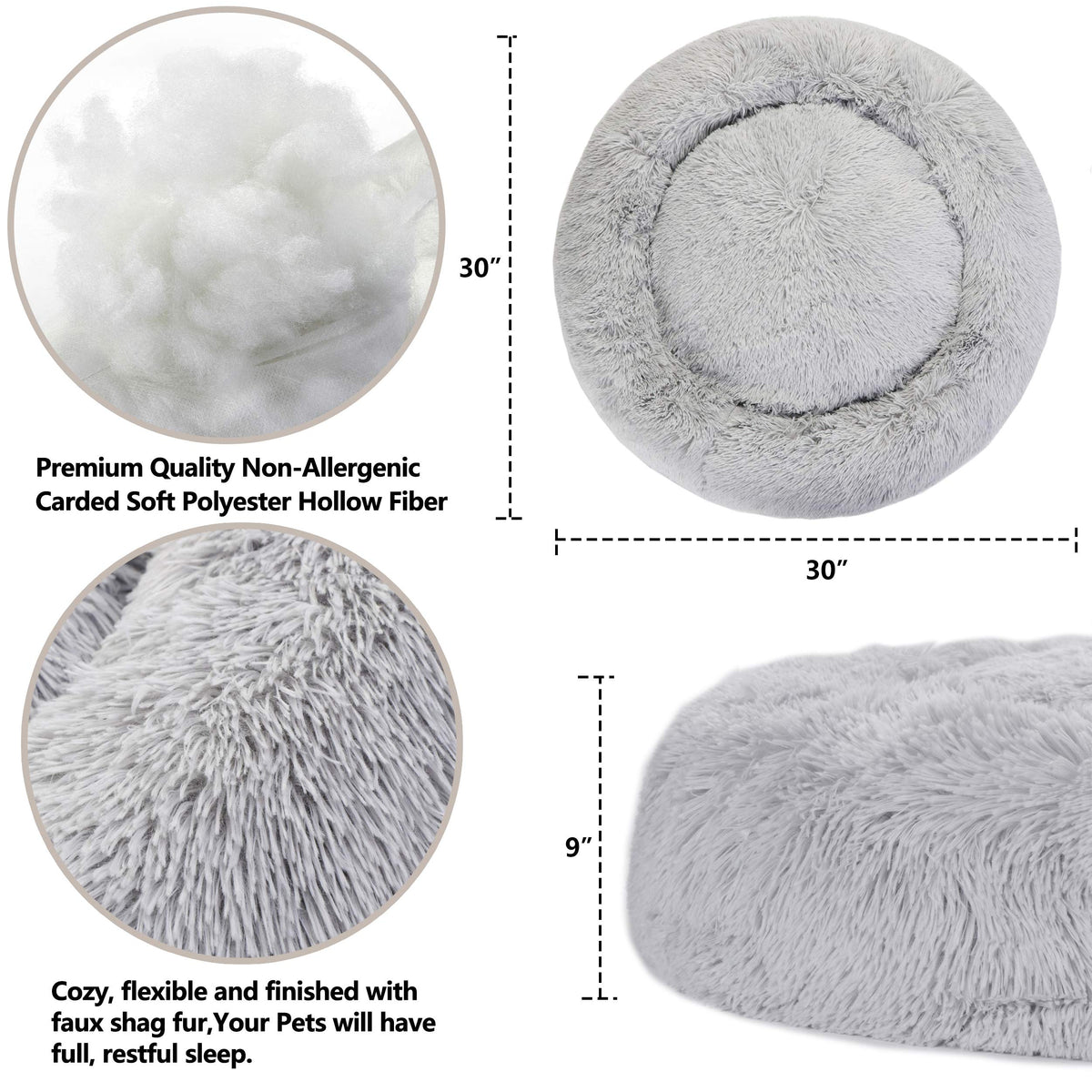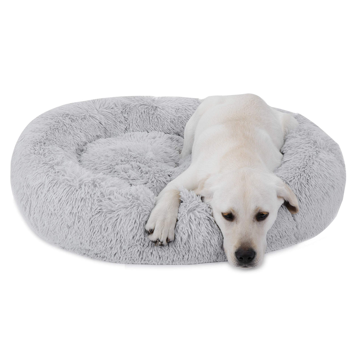 Donut Dog Bed Calming Ultra Soft Shag Faux Fur Dog Bed Comfortable Donut Cuddler For Dogs And Cats,Self Warming And Washable (30 Inches, Grey)