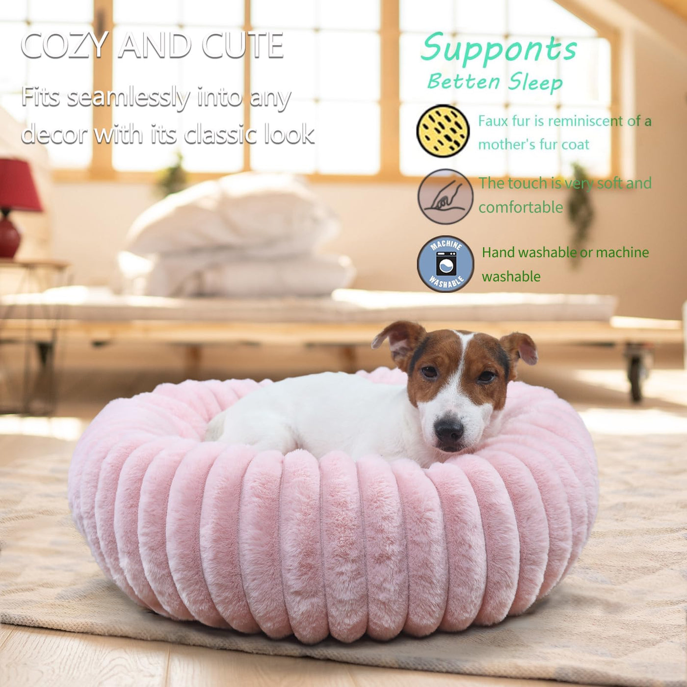 This 23-Inch Calming Donut Dog Bed Is Designed For Small Dogs, Puppies, And Large Cats, Offering A Cozy And Snuggly Space For Your Pet To Relax. Its Orthopedic Design Provides Gentle Support For Your Pets Joints, Promoting Restful Sleep. Made From Soft, High-Quality Materials, It Offers Ultimate Comfort And Warmth. The Bed Is Machine Washable, Making It Easy To Keep Clean And Fresh. The Cute Pink Color Blends Seamlessly With Any Home Decor, While The Snug, Donut Shape Provides Security For Pets Who Love To Curl Up.