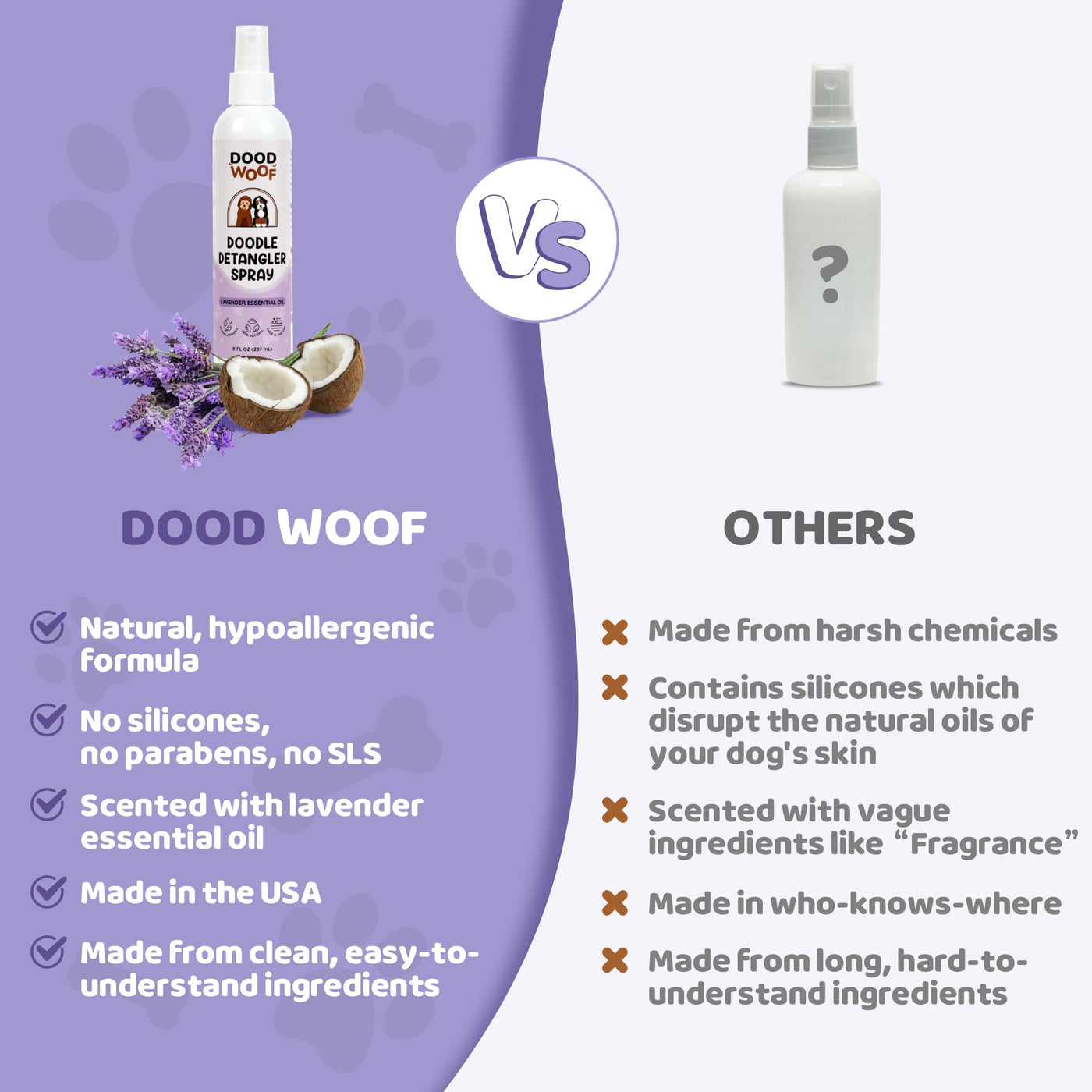 Dood Woof Dog Detangler Spray Dematting For Doodle | Natural Dog Leave In Conditioner Spray For Grooming And Mat Removal | Detan