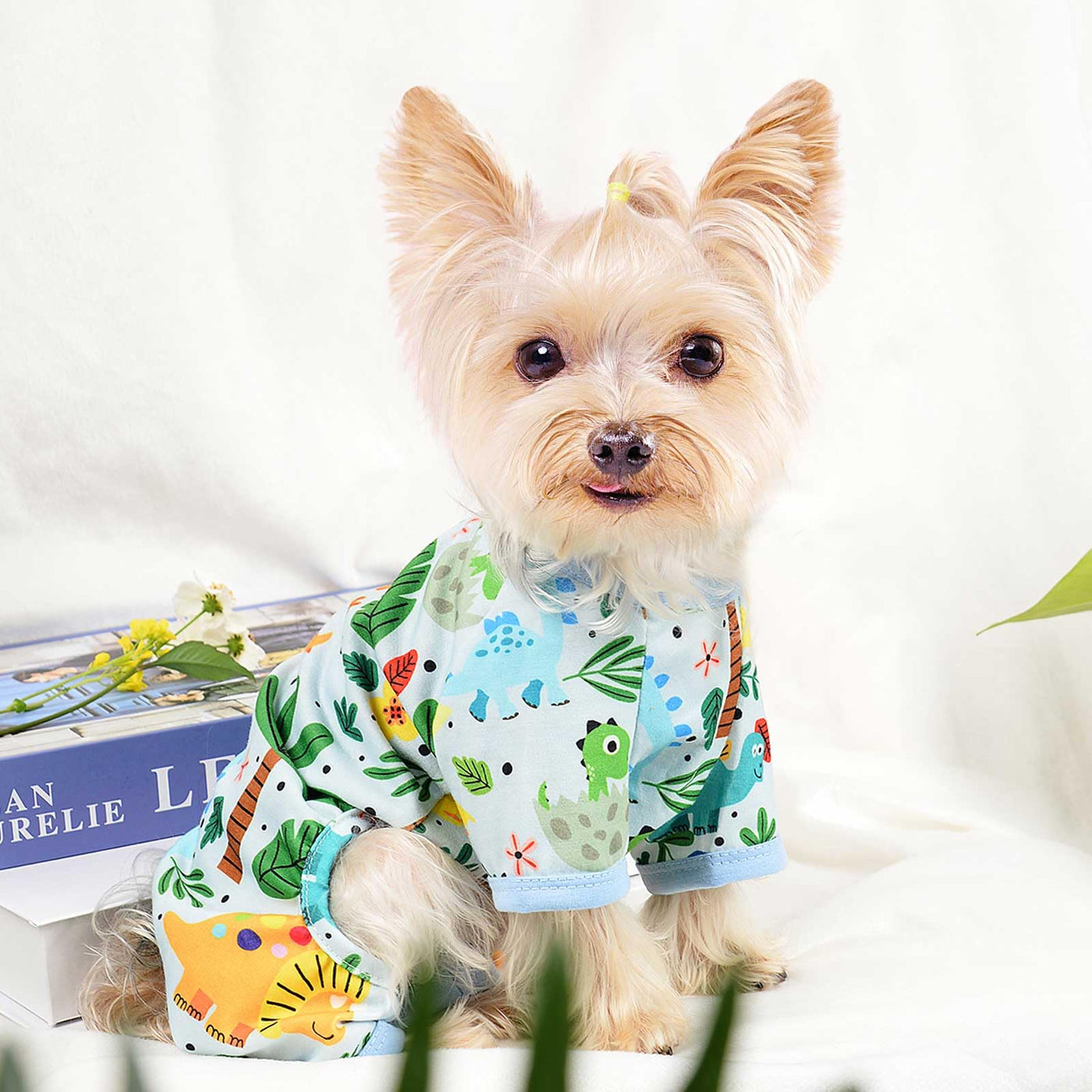 Summer Dog Pajamas Dog Kitten Clothing Pet ? Puppy Pjs Mini Puppy Yorkie Clothes Puppy Clothing And Accessories Xs Puppy Specifications:? Material: Soft And Comfortable Fabric ? Color: Lovely Pink, Yellow, Green ? Pattern: Animals, Green Plants, Green Leaves, Flowers ? It Is Suitable For Small Dogs, Such As Chihuahua, Poodle, Cup Poodle, Pomeranian, Yorkshire Terrier, Bichon Frisbee, Cocker, Etc ? Xs -- Back Length: 20Cm/7.87 Inches, Bust: 31Cm/12 Inches, Neck Circumference: 20Cm/7.77 Inches, Suitable For 2.2-4.4 Pounds.? S -- Back Length: 25Cm/9.84 Inches, Bust: 36Cm/14.17 Inches, Neck Circumference: 25Cm/98.4 Inches, Suitable For 4.4-6.6 Pounds.? M -- Back Length: 30Cm/11.81 Inches, Chest Circumference: 43Cm/16.92 Inches, Neck Circumference: 29Cm/11.4 Inches, Suitable For 6.6-7.7 Pounds. ? L - Back Length: 36Cm/14.17 Inches, Chest Circumference: 47Cm/18.50 Inches, Neck Circumference: 34Cm/13.38 Inches, Suitable For7.7-10.5 Pounds. ? Xl -- Back Length: 41Cm/16.1 Inches, Chest Circumference: 52Cm/20.4 Inches, Neck Circumference: 39Cm/15.4 Inches, Suitable For 10.5-13.8 Pounds.? Xxl -- Back Length: 46Cm/18.1 Inches, Chest Circumference: 57Cm/22.4 Inches, Neck Circumference: 44Cm/17.3 Inches, Suitable For 13.8-17.61 Pounds. ?Funtion: Comfortable Dog Pajamasthis Puppy Pajamas Is Made Of Soft Cotton, Which Is Super Friendly To Sensitive Skin, Keeps Your Pet Feel Comfortable And Breathable.Stylish Puppy Onesiesbeautiful Love Patterns Make Your Puppy Lovelier. It Is Easy To Put On And Take Off With The Elastic Sleeves. Puppy Pjs Tracksuit Is Perfect For Photos, Walking And Everyday Wear ?Warm Tip: Only Applicable To Small Dogs Or Dogs And Cats