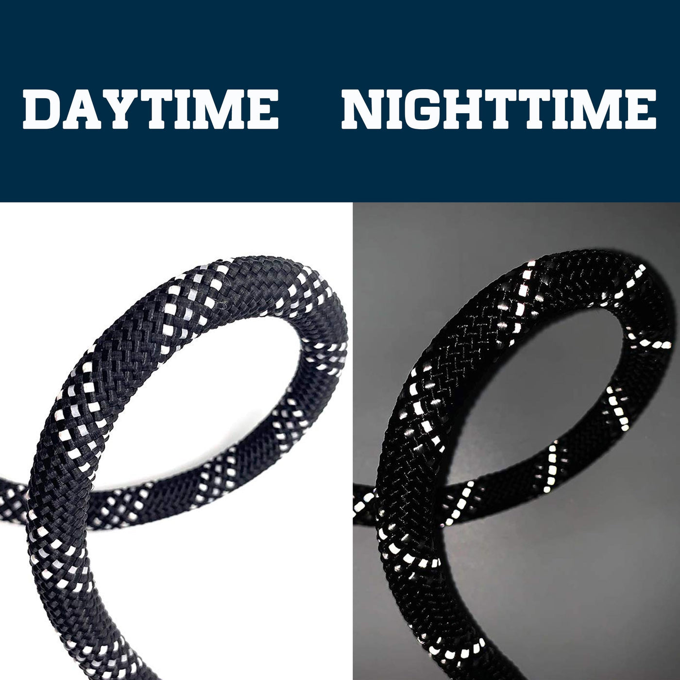 Q: What makes this leash different from standard dog leashes?A: This leash features a double-handle design for better control in crowded areas, a heavy-duty construction for strong pullers, and reflective braiding for enhanced visibility during low-light conditions.