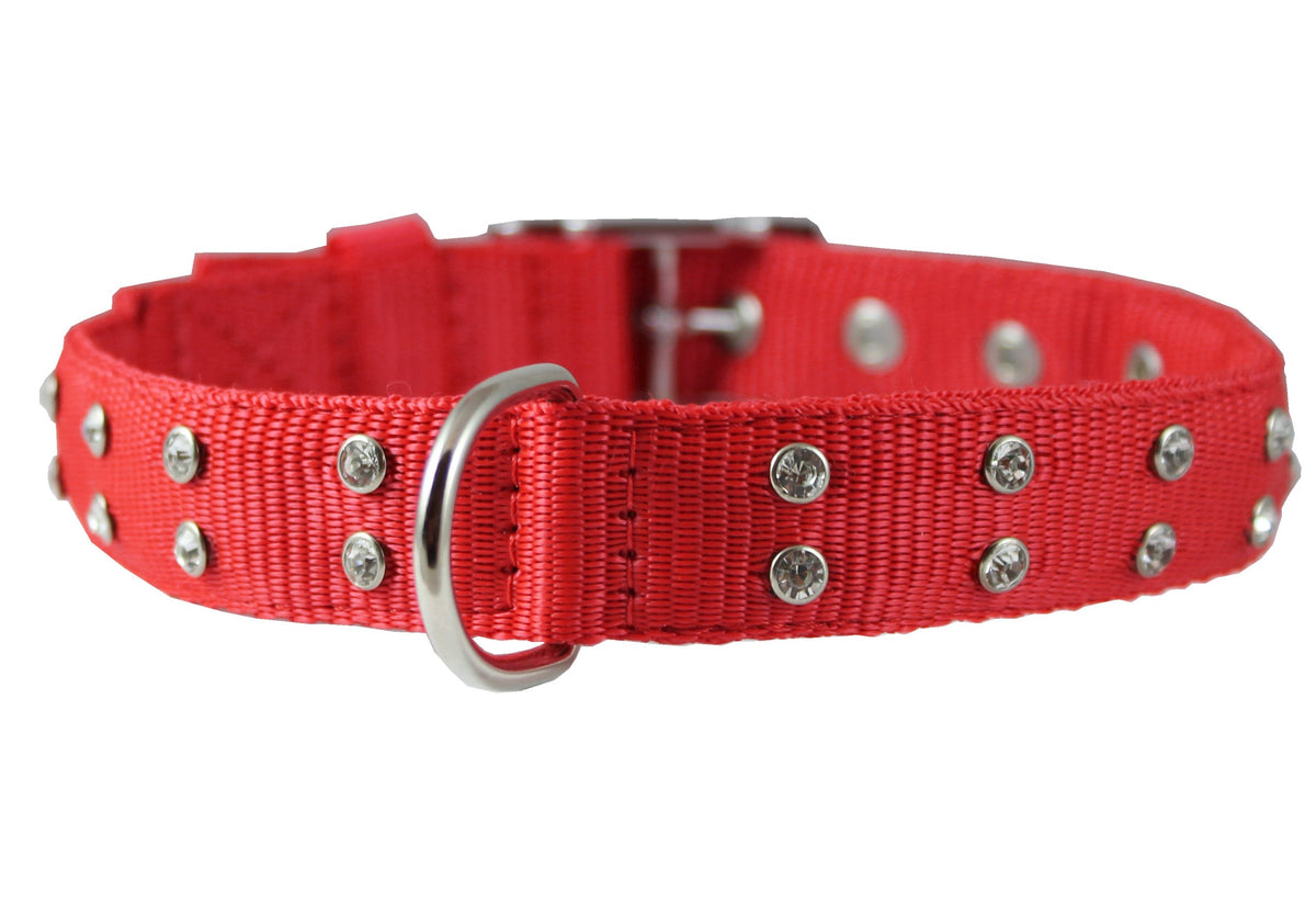 Strong Durable And Comfortable Collar For Everyday Use. Easily Adjustable To Fit 17''-21.5'' Neck. Made Of High Quality Two Layers Nylon. Crystal Diamante Decorated. Most Suitable For Medium And Large Breeds