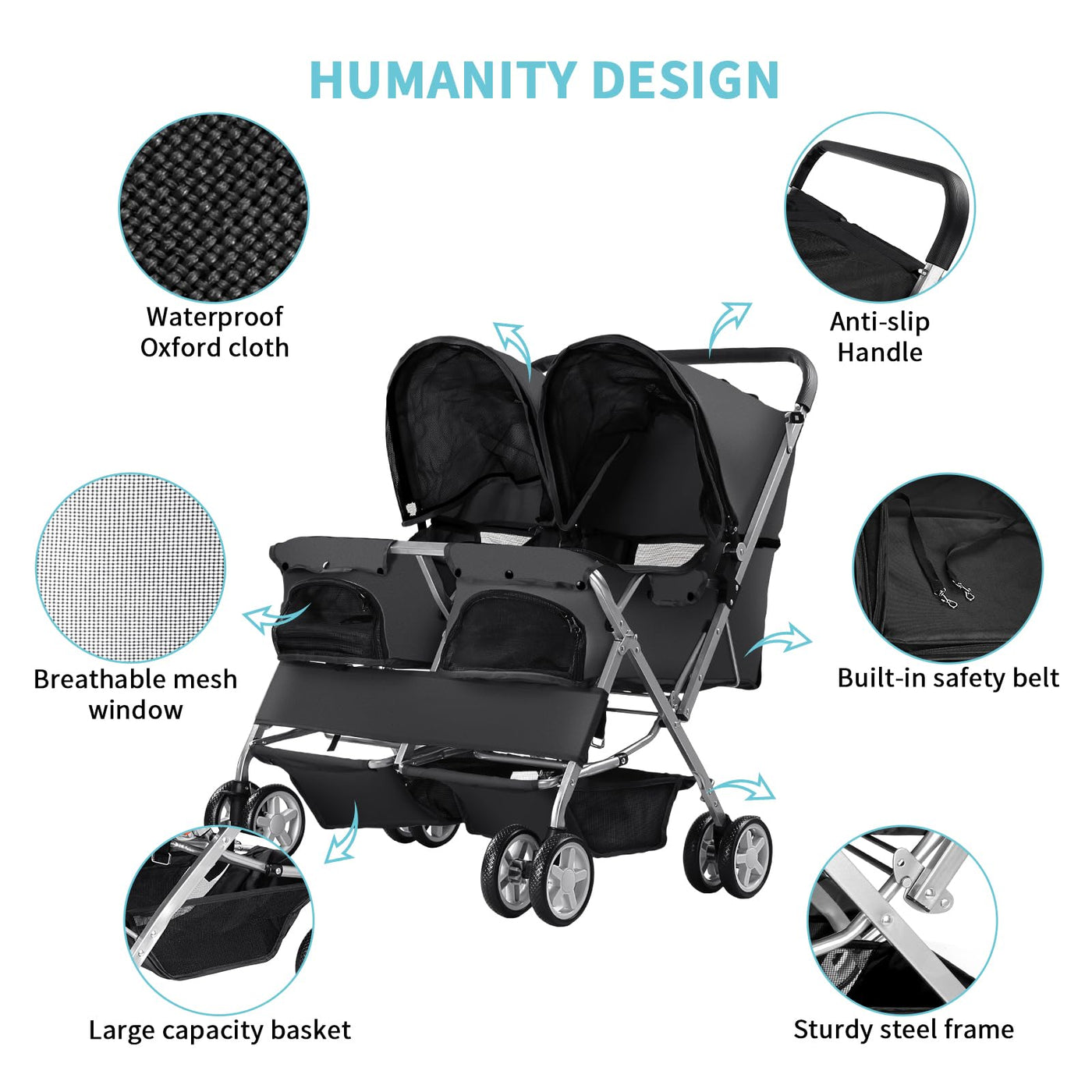 As A Pet Owner, You Understand That Your Furry Friends Deserve Nothing But The Best. That'S Why We Proudly Present Our Premium Double Pet Stroller, Designed To Elevate Your Pets' Comfort And Style On Every Outing.&Nbsp; Durable Material: Built To Withstand The Wear And Tear Of Outdoor Adventures, Our Pet Stroller Boasts A Sturdy And Durable Construction. The High-Quality Materials Ensure That It Stands The Test Of Time, Providing A Safe And Cozy Space For Your Pets Trip After Trip. 2 Seaters For Double Pets: Double The Joy With Our Two-Seater Design! Our Double Pet Stroller Offers Two Spacious Seats, Providing Ample Room For Your Pets To Sit Or Lie Down Comfortably Side By Side. Now You Can Take Both Your Furry Companions With You On Every Adventure. Let Them Share The Excitement And Create Lasting Memories Together. Breathable Mesh Window: We Know How Important It Is For Your Pets To Enjoy Fresh Air And Stay Connected With The Environment. That'S Why Our Stroller Features A Large, Breathable Mesh Window, Allowing Your Pets To Relish The Breeze And Soak In The Sights While Being Protected From Insects And Bugs. Large Capacity Basket: Our Pet Stroller Is Equipped With A Generous, Easy-Access Basket. Store Your Pets' Essentials, Treats, Toys, And Even Your Belongings, So You Have Everything You Need Within Reach During Your Adventures. Built-In Safety Belt: Your Pets' Safety Is Paramount. That'S Why Our Stroller Is Thoughtfully Designed With A Built-In Safety Belt To Secure Your Furry Companions During The Ride. You Can Explore With Peace Of Mind, Knowing That Your Pets Are Safe And Sound. Whether You'Re Strolling Through The Park, Exploring City Streets, Or Simply Enjoying A Leisurely Walk, Our Deluxe Double Pet Stroller Ensures That Your Pets Are Always In The Lap Of Luxury. Embrace The Joy Of Bonding With Your Pets Like Never Before.