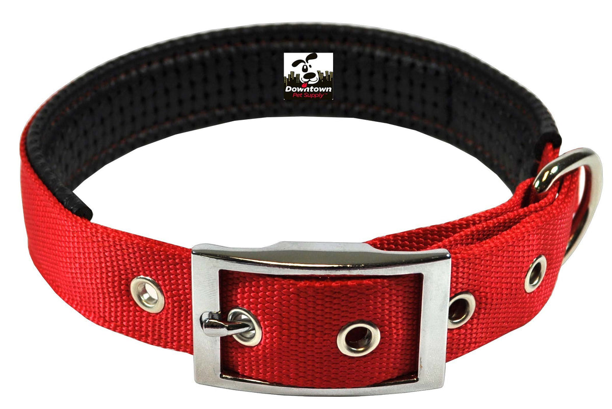 Downtown Pet Supply Deluxe Padded Dog Collar - Medium, Red, Nylon, Buckle, Water Resistant, Adjustable, Machine Washable, Dog Collar
