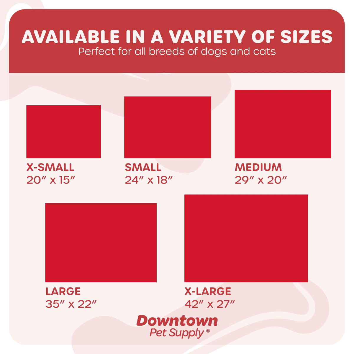 Q: What sizes are available for the Downtown Pet Supply Dog Crate Mat?A: The Downtown Pet Supply Dog Crate Mat is available in various sizes, including a medium size that measures 29 inches by 20 inches, making it suitable for medium dog breeds.