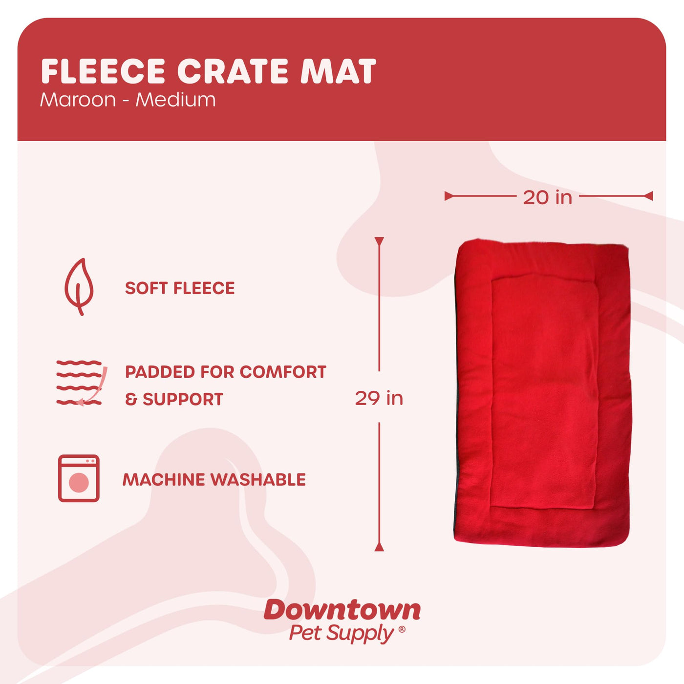 Downtown Pet Supply - Dog Crate Mat - Comfort Dog Bed Or Cat Bed - Soft Fleece Nap Mat - Easy Maintenance, Machine Washable Dog Bed - Maroon - 29 In X 20 In - Medium Dog Bed