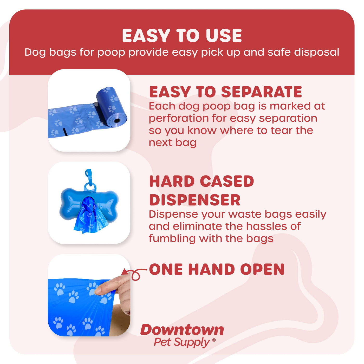 Downtown Pet Supply dog poop bags are strong quality and very easy to open, with each bag marked at perforation for easy separation, saving you the trouble of fumbling for where to tear the next bag. Our poop bags for dogs are leak-proof, long and wide for easy dog poop pick up. Each bag is carefully marked with the Downtown Pet Supply Trademark, featuring a rainbow of fun colors. Let's not forget about the handy pet waste bag dispensers, that will fit perfectly to your dog's leash, whether you have a Great Dane, golden retriever, chihuahua or labradoodle. At Downtown Pet Supplies, we've been making our own products for years. Why does that matter? We stand behind our products! We are proud pet owners first and business owners second. We understand that a pet is a family member and that means they should be cared for, trained and pampered with the best pet supplies out there. Excellent quality at an affordable price with the best possible service. That’s why our products typically cost a bit less than the other guys. Think of us as your personal shoppers. If you bring it home and it isn't perfect, we'll send you a new one immediately, no questions asked! We stand behind our returns policy.