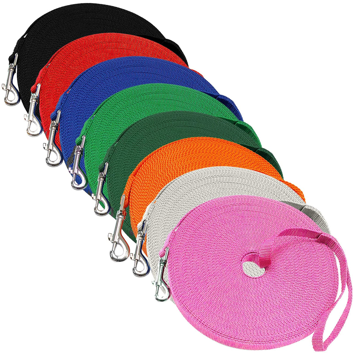 Downtown Pet Supply - Long Dog Leash - 15 ft Pink Nylon Dog Training Leash for Recall & Obedience