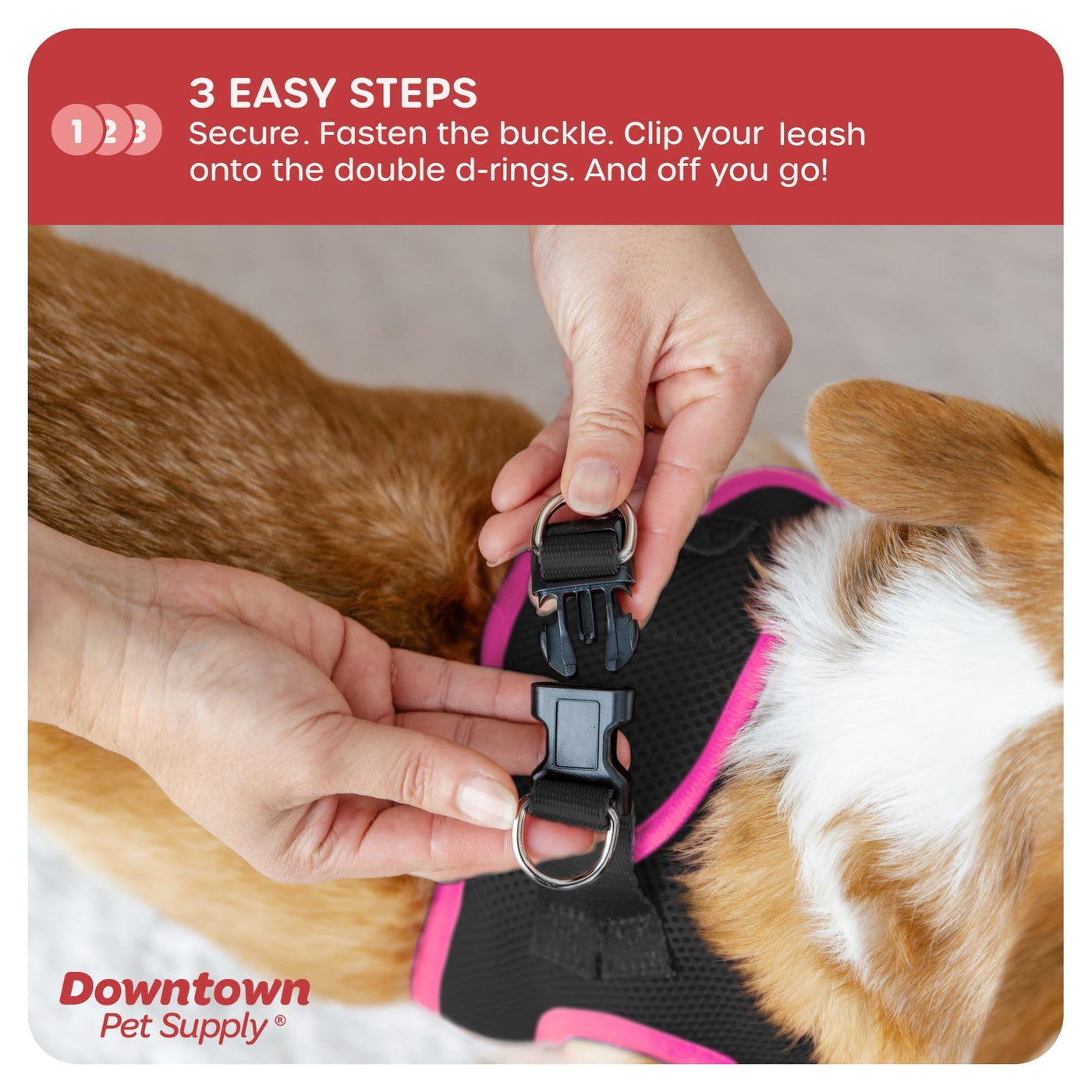 Downtown Pet Supply Step In Dog Harness For Small Dogs No Pull, Large, Black W/Pink Trim - Adjustable Harness With Padded Mesh F