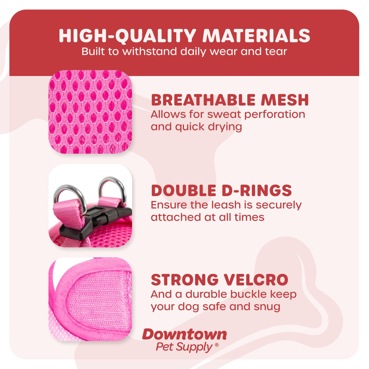 Downtown Pet Supply Step in Dog Harness for Small Dogs No Pull, Medium, Pink - Adjustable Harness with Padded Mesh Fabric and Re