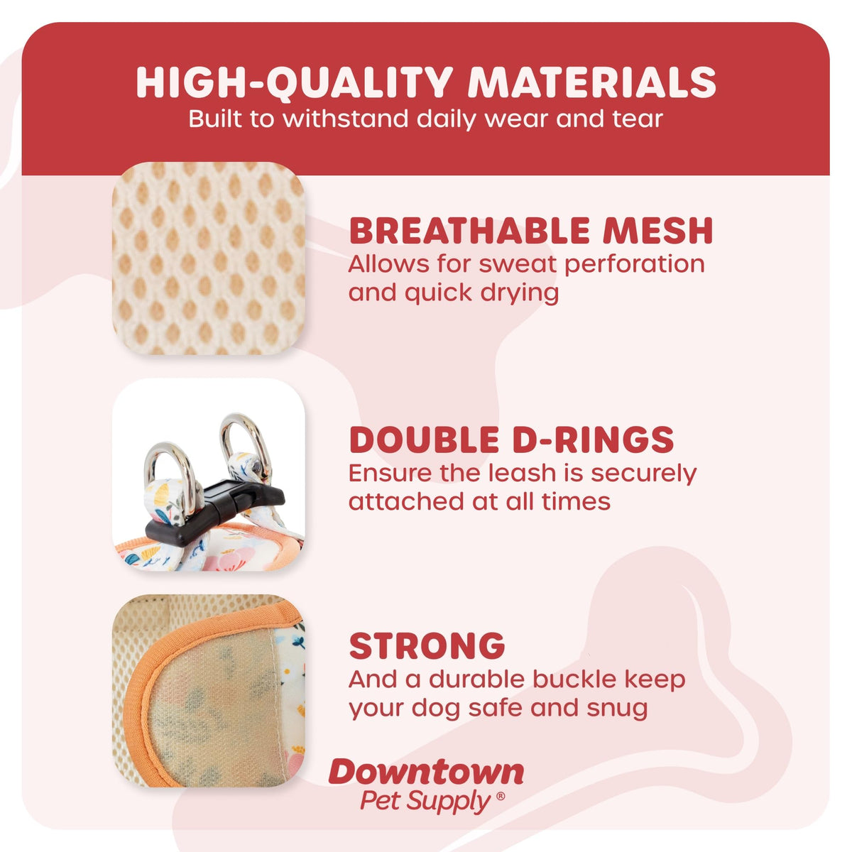 Downtown Pet Supply Step In Dog Harness For Small Dogs No Pull, Small, Floral - Adjustable Harness With Padded Mesh Fabric And R