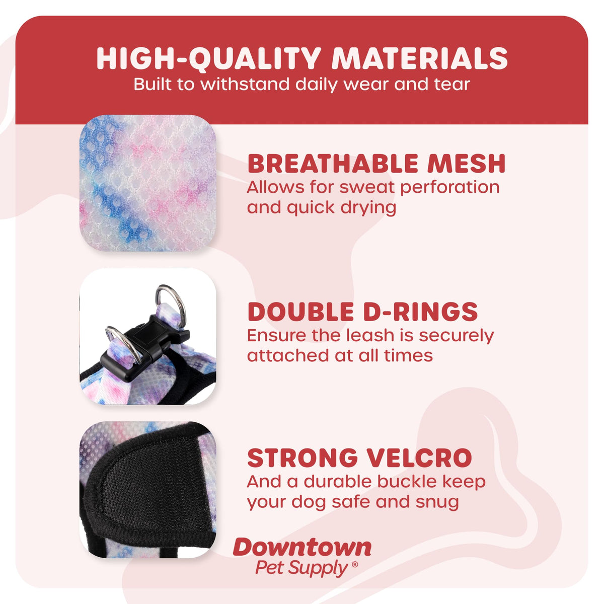 Downtown Pet Supply Step In Dog Harness For Small Dogs No Pull, Small, Tie Dye Pink/Purple - Adjustable Harness With Padded Mesh