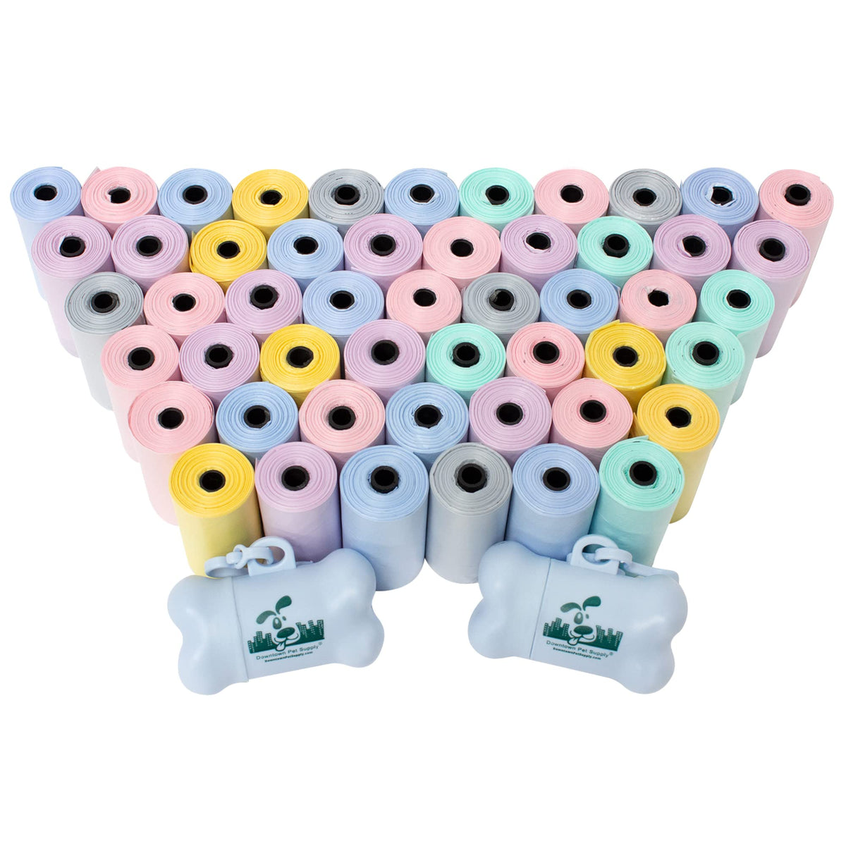 Downtown Pet Supply Unscented Poop Bags For Dogs With Dispenser, 1000 Count - Leak-Proof Dog Waste Bags And Bone-Shaped Dog Poop Bags Holder For Leash - Pastel Rainbow, 12.5' X 8.5'