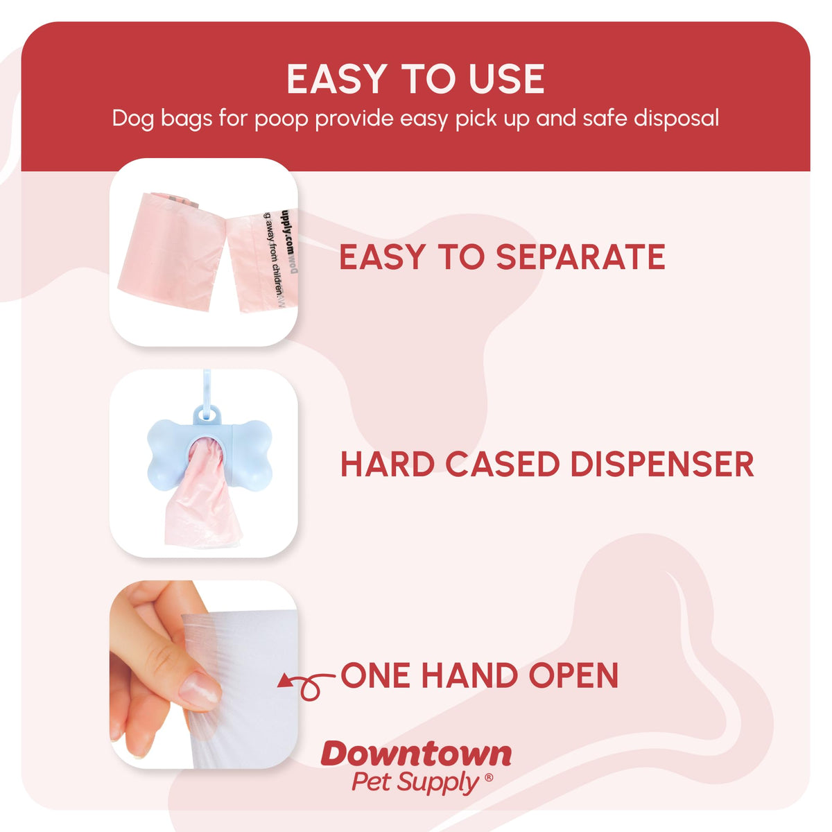 Downtown Pet Supply Unscented Poop Bags For Dogs With Dispenser, 180 Count - Leak-Proof Dog Waste Bags And Bone-Shaped Dog Poop