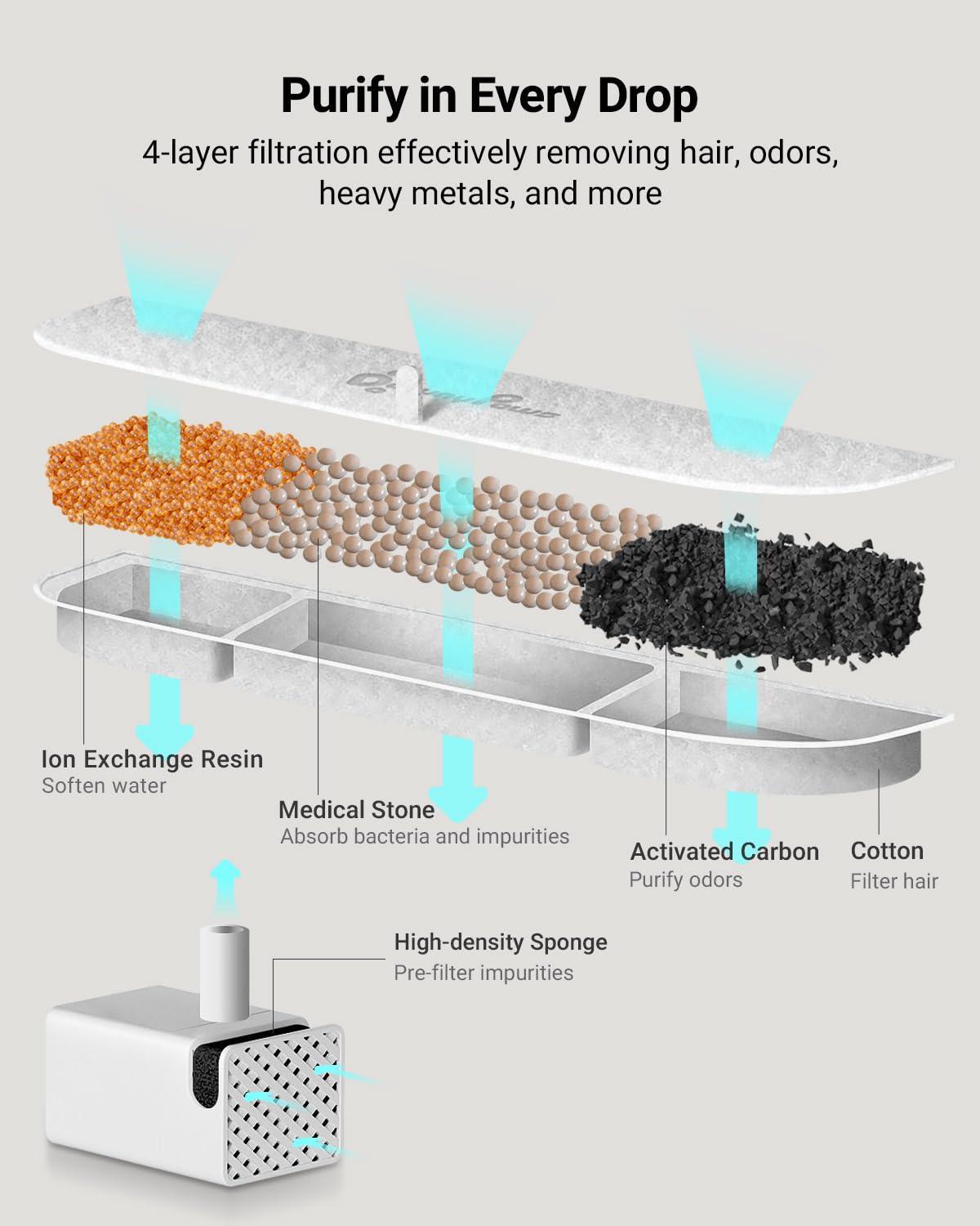 Downypaws 16 Packs Replacement Filters For Battery Operated Cat Water Fountain Dpwfp6 Fursink, 8 Months Set Of Replacement Filte