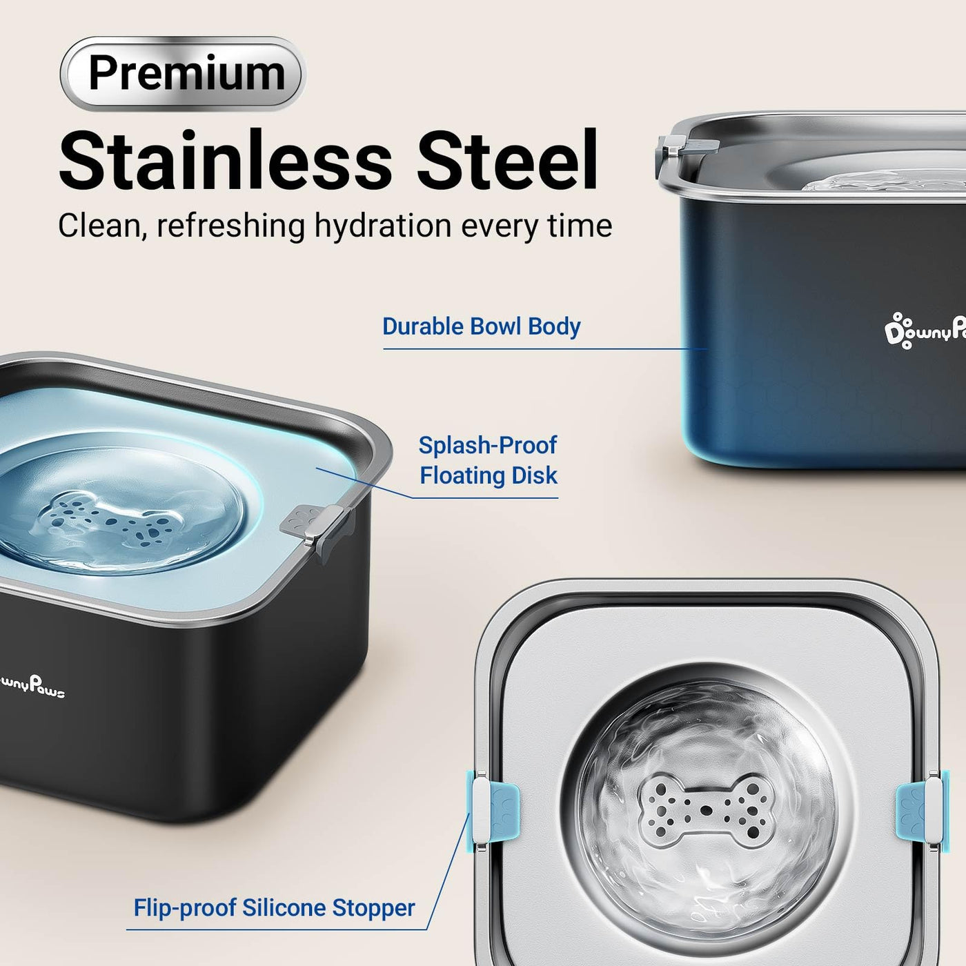 Downypaws No Spill Water Bowl For Dogs,101Oz/3L Slobber Stopper Dog Bowl Stainless Steel, Slow Drinking Dog Water Bowl, No Mess