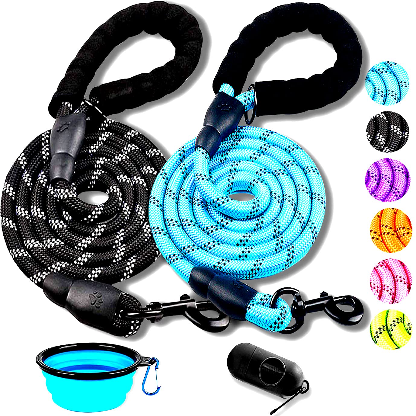 Heavy Duty -- The Dog Leash Is 6 Ft Long Made With Strong 12 Inch Diameter Rock Climbing Rope And Highly Durable Hard Steel Clip Hook With Excellent Spring Action The Thickness Of The Rope Makes It Very Comfortable To Restrain Your Dog Comforting Padded Foam Handles - Features Soft Padded Ergonomically Designed Handles For Extra Comfort Provides A Firm Grip Without Rubbing Against Your Hand Causing Rope Burns Dog Leash Will Not Take Long For You To Thank Us On The Comfort Of This Handle If You Have A Large Dog And If You Need To Frequently Hold It Back While Walking Reflective For Night Safety Custom Knitting Technology - Highly Reflective Threads Dog Leashes Providing Higher Degree Of Visibility At Night And Late Evening Walksthe Machine Based Knitting Techniques Used In Our Leash Makes Us One Of The Highest Quality Sellers Color Options - Available In 5 Distinct Radiant Colors To Pick From Pick What Suits You And Your Dog We Are Also Throwing In Free Gifts In The Form Collapsible Bowl And Poop Bags For Facilitate You And Your Dog While Being Out Value Pack And Invlauable Commitment - Get The Most Out Of Your Bargain This Value Pack Of 2 Dog Leashes And A Collapsible Water Bowl And Garbage Bags Pricing Is Unmatchable When You Buy Them Separately Order Now, The Shopping Cart Is Already Added With Our Commitment Of Providing Best Customer Service Refund Or Exchange If You Are Not Happy For Whatever Reason