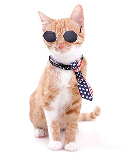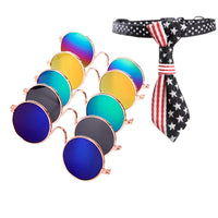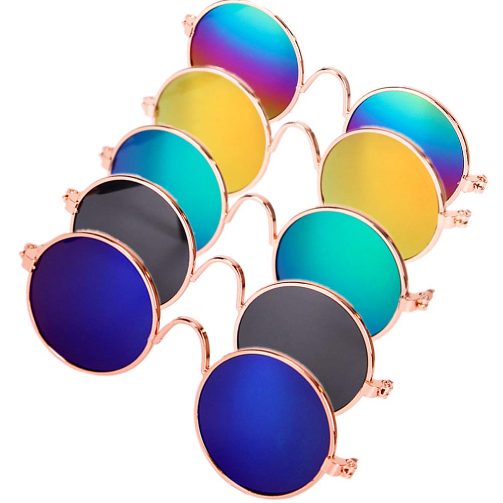 Dplus Cool Stylish And Funny Cute Pet Sunglasses - Glasses Set Of 5 - Classic Retro Circular Metal Prince Sunglasses For Cat,Chihuahua Or Small Dogs (With Tie)