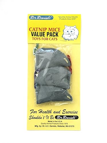Q: Where are the Dr. A.C. Daniels Catnip Mouse toys made?A: These catnip mouse toys are proudly made in the USA, ensuring high-quality standards and materials.
