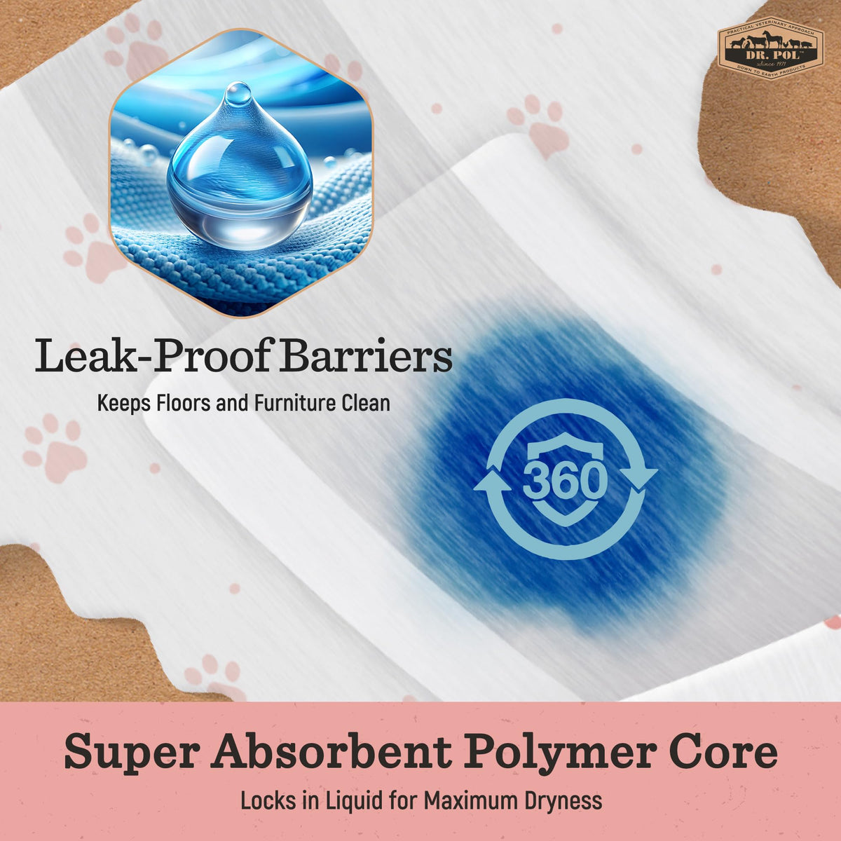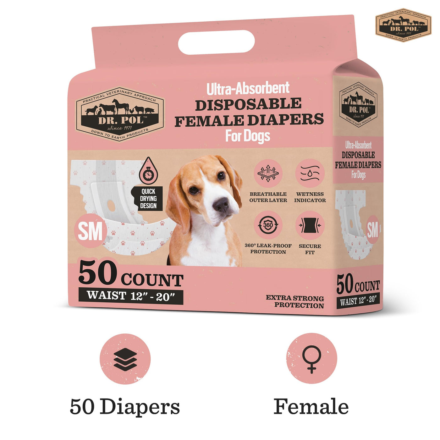 Dr. Pol Female Dog Diapers - Super Absorbent, Breathable, Leak-Proof With Wetness Indicator, Small, 50 Count