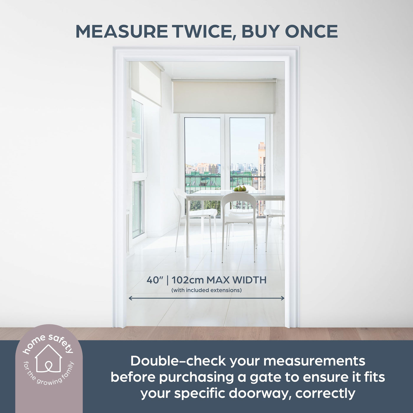 Dreambaby understands that every parent seeks assurance when it comes to their child's safety. With Dreambaby Ava baby gates, we help make life easier and safer for you and your family. If you've been scrolling endlessly for a way to create a space for a baby play area, or a toddler gate, your search ends here. Our Ava baby gate for doorways and stairs requires effortless installation and fits openings ranging from 29.5 inches to 40 inches when using the included gate extensions. To install, simply measure the doorway and fasten the mounting cups to the wall with double sided adhesive tape (for top of stair use the mounting cups must be screwed into place). Next, tighten the tension knobs by turning them clockwise simultaneously - start with the lower ones then do the top ones for even pressure on both sides. Your gate should be aligned and fitted to the wall now! To open the gate door simply slide the button, pull it upwards and step through. The gate door has a built in smart stay open feature and opens both ways making moving through the gate easy for adults that may be carrying children, carrying in groceries or just wanting to have the gate stay open! As an added bonus our Ava gate is a great option to use as a dog gate as well!