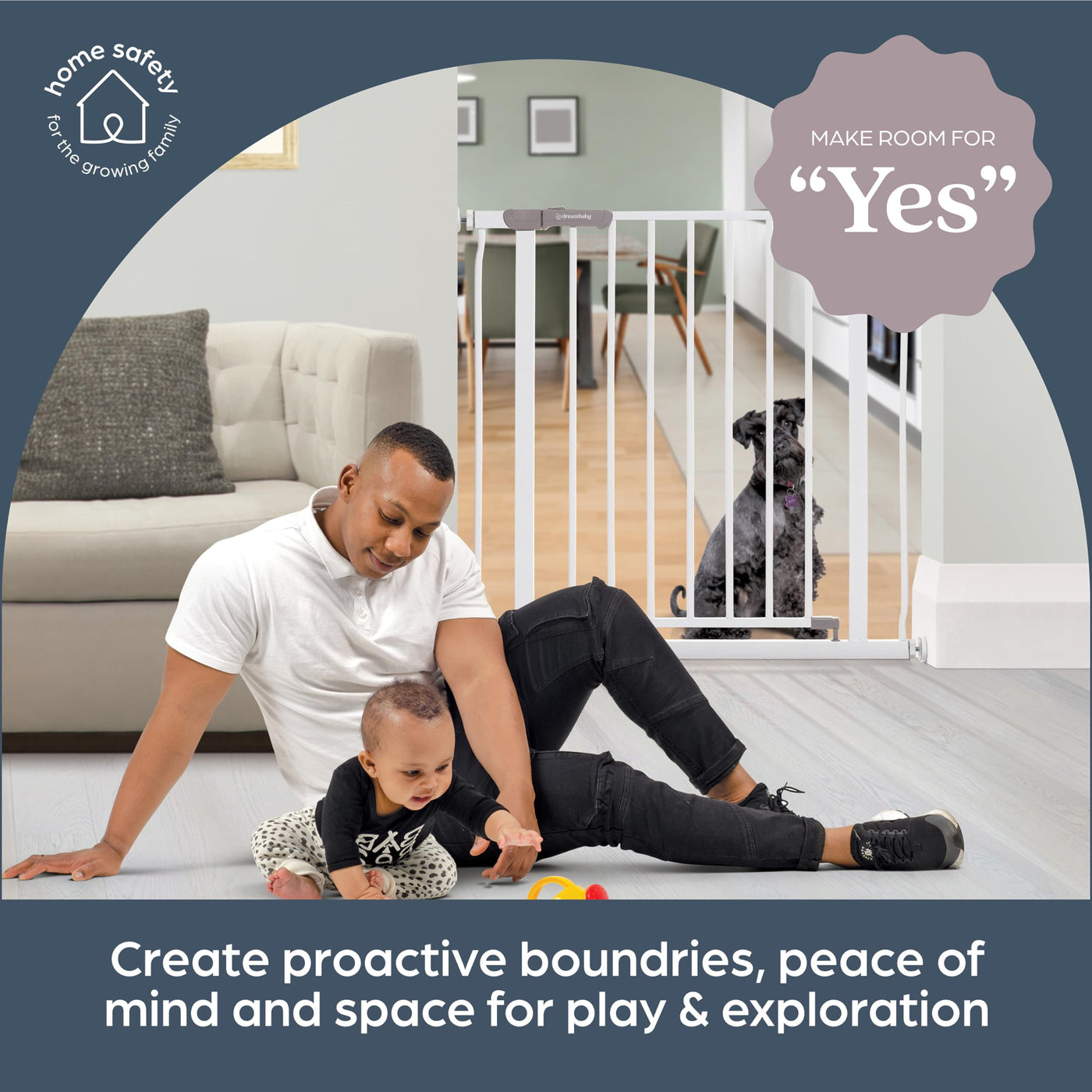 Dreambaby Ava 29.5''-40'' Extra Wide Baby Gate for Stairs, Doorways, and Hallways - Easy to Install - White Dog Gate