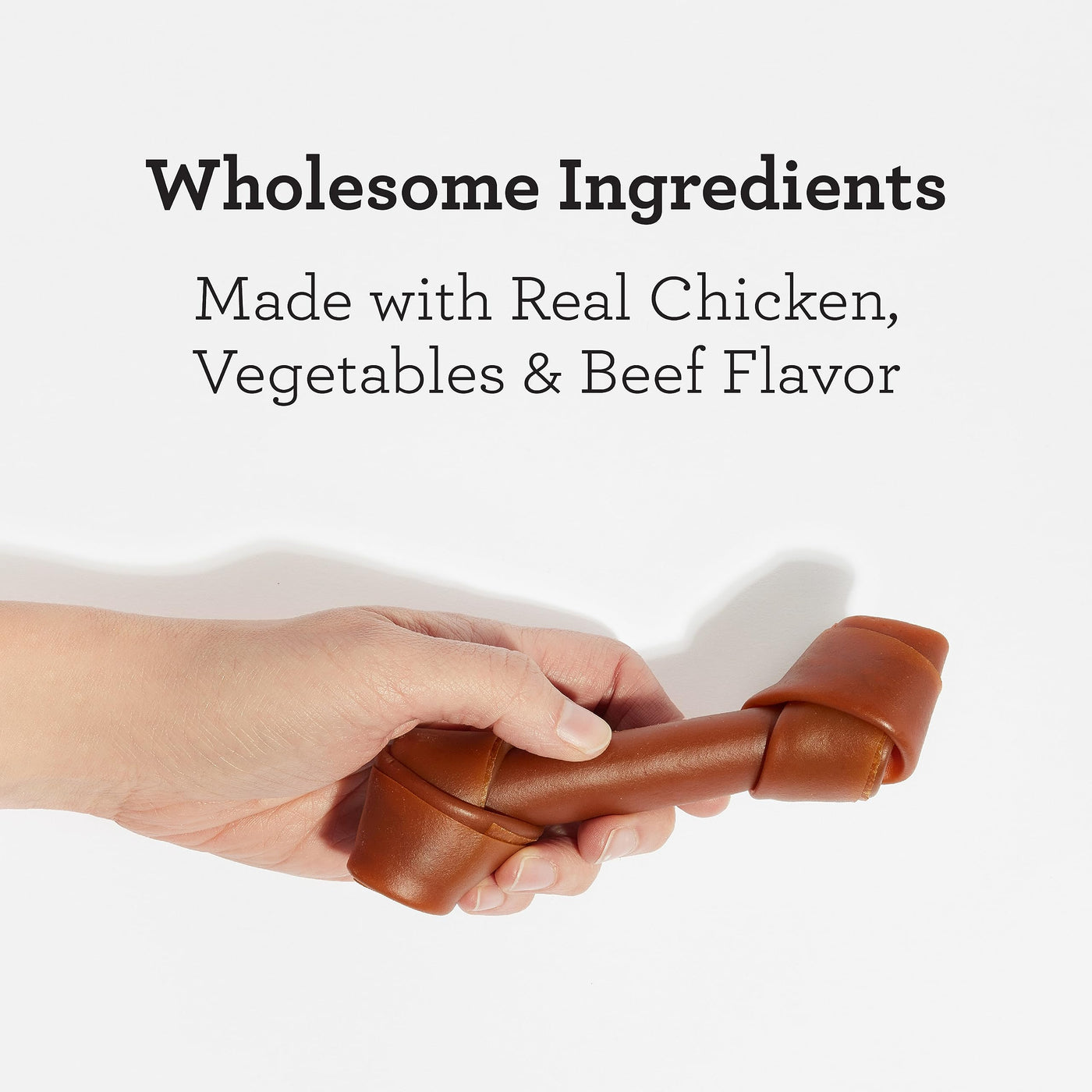 DreamBone chews have all the benefits of a rawhide chewwithout the rawhide. No-rawhide DreamBone chews are made with real chicken, beef, bacon and cheese or sweet potato and wholesome vegetables for a scrumptious taste dogs cant resist! No-rawhide DreamBone Medium Chews for dogs are made with real beef, chicken and wholesome vegetables for an irresistible taste dogs dream about. Enriched with vitamins and minerals, these chews are a healthy alternative to rawhide. Treat your pup to these highly digestible and 100 percent delicious chews. DreamBone Medium Chews promote healthy teeth and gums through the natural action of chewing, making them a treat both you and your dog can love. Give your dog 1 to 2 DreamBone Medium Chews per day. Always supervise your pup during chewing activity and provide access to fresh, clean water. These chews are intended for intermittent or supplemental feeding only. Store in a cool, dry place. After opening, reseal or store in an airtight container to preserve freshness. The experts at DreamBone brand want you to have healthy, happy dogs. We know that your dog is more than a pet - theyre family. Chewing is an essential, healthy and enjoyable activity for dogs. Dog chews help keep teeth clean, jaws strong and are mentally stimulating to help prevent boredom and destructive behavior. DreamBone chews help satisfy a dogs natural chewing instinct.