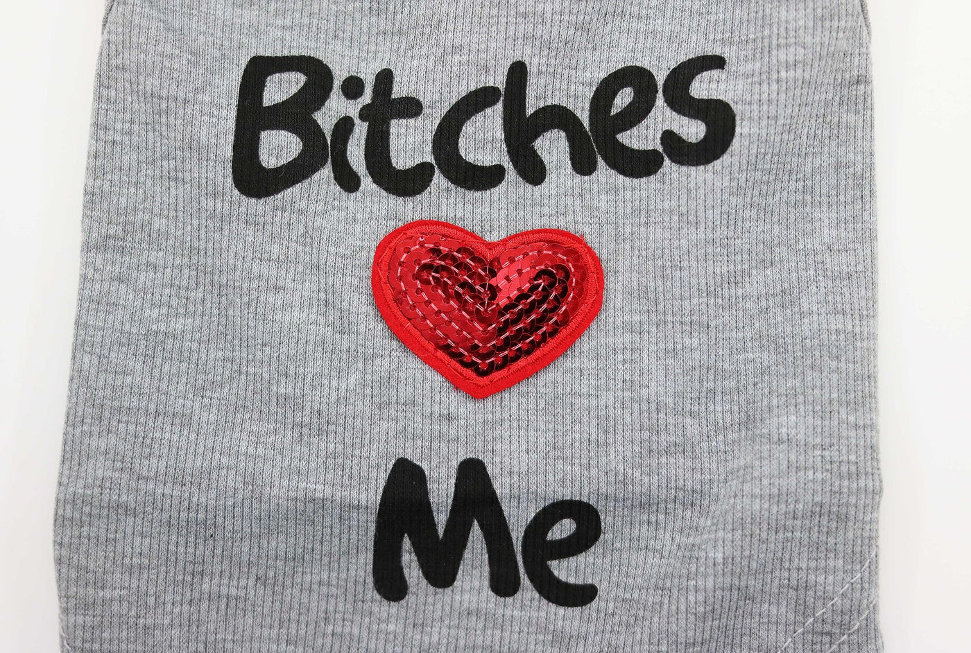 Droolingdog Pet Clothes Bitches Love Me Dog Shirt For Cats And Small Dogs, Small, Grey