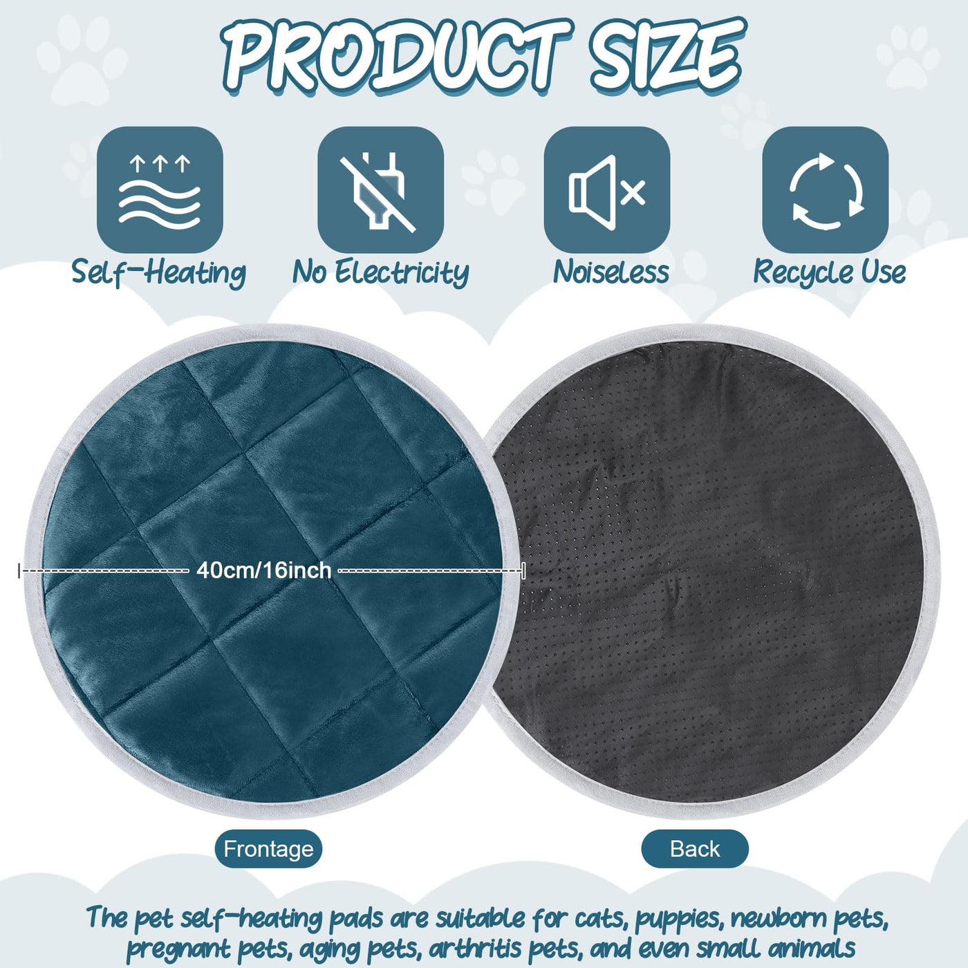 Features: Our Pet Bed Mat Reflects Your Pet'S Own Heat, Keeping Your Pet Warm And Safer Without The Use Of Electricity. Our Pet Heating Pad Is A Clever Gift Idea That You Can Give To Your Family, Friends And Other Pet Owners To Keep Your Family Companions Warm Throughout The Winter. Specifications: Material: Soft Fluffy Fabric Color: Blue Size: About 16 Inches/40 Cm In Diameter Package Includes: 2 X Round Cat Heating Pad Notes: Manual Measurement, Please Allow Slight Errors On Size. The Color May Exist A Slight Difference Due To Different Screen Displays. Before Purchase, Confirm Whether The Product Size Is Suitable For Your Pet, And Observe The Pet'S Reaction When Using. Please Remove The Product In Time If There Is Any Discomfort.