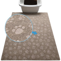 TRAPS LITTER, REDUCES LITTER TRACKING (ENJOY MESS-FREE PEACE OF MIND): Our unique paw design and channel grooves trap and contain litter (both kicked out and stuck to cat’s paws). This litter mat is far superior than other mats on the market. The soft paw-friendly material gently loosens litter from cat’s paws, which helps to reduce litter tracking throughout the home. | ABSORBENT POLYESTER FABRIC, WITH WATERPROOF BACKING (URINE-PROOF): Patented Drymate material absorbs and contains liquids and wicks away moisture. The waterproof backing stops liquids and urine from soaking through and prevents them from damaging or staining the surface below. | SLIP-RESISTANT BACKING: Helps to keep the mat securely in place and prevents it from sliding around. This keeps the mess on the mat, and not on your floors. Also, it makes it easier to vacuum because the mat stays in place. | EASY TO CLEAN (MACHINE WASHABLE): Simply vacuum or roll the mat up and pour excess litter back into the box. The mat can be machine washed or scrubbed with soap, hosed off and hung dry. Do not bleach. | (MADE IN THE USA) DURABLE & RECYCLED MATERIAL: Phthalate and BPA free. Polyester fabric is made from over 50% recycled fiber. Durable and long-lasting material.