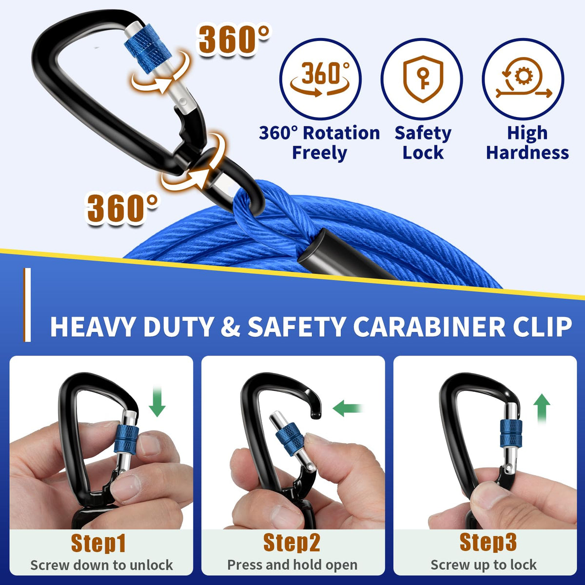 Introducing Our Heavy-Duty Tie Out Cable For Dogs, The Perfect Choice For Providing Your Dog With A Safe And Secure Outdoor Experience Made From A 6Mm-Diameter Stainless Steel Wire With Vinyl Coating, This Dog Cable Is Resistant To Chewing And Rusting, Ensuring The Safety Of Your Furry Friend Equipped With Ergonomic Handles That Fit The Human Hand Comfortably, It Is Easy To Carry And Store The Long Cord And Can Be Used As A Handle For Leash Control While Walking Your Dog The 360-Degree Rotating Design Of The Hook Provides More Flexibility, And The Included Safety Buckle Ensures That Your Dog Can Move Freely While Remaining Safe And Secure The Rust-Resistant Coating On The Hook And The Vinyl Material Of The Cable Make It Safe To Use On Lawns, And It Can Easily Be Cleaned With Water If It Becomes Dirty Or Covered In Dust Whether You Want To Tie It To A Tree, Use It On A Dog Post, Or Use It As A Long Dog Leash, Our Dog Cable Is Versatile And Provides A More Natural And Comfortable Outdoor Experience For You And Your Furry Friend Get Yours Now And Enjoy Worry-Free Playtime With Your Dog