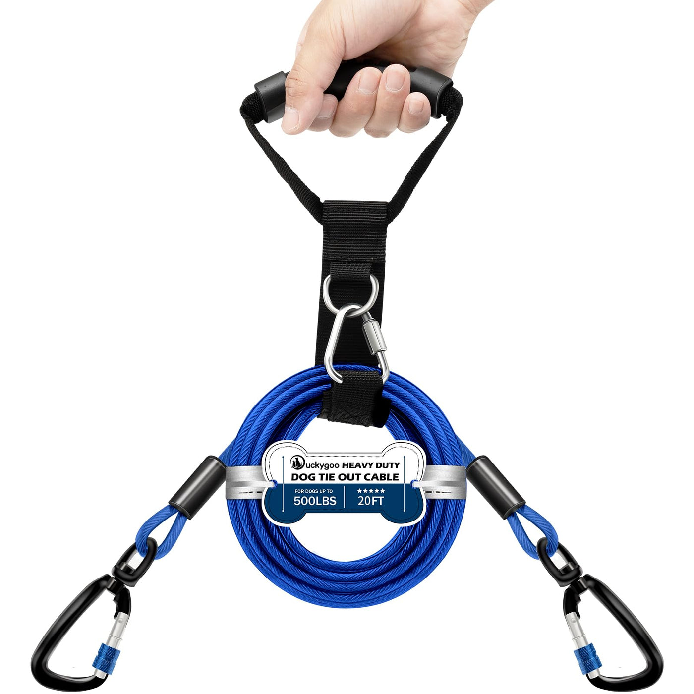 Duckygoo Heavy Duty Dog Tie Out Cable-Dog Leads For Yard & Camping, Rust Proof Leash Cable With Carrying Handle, No Tangle Tethe