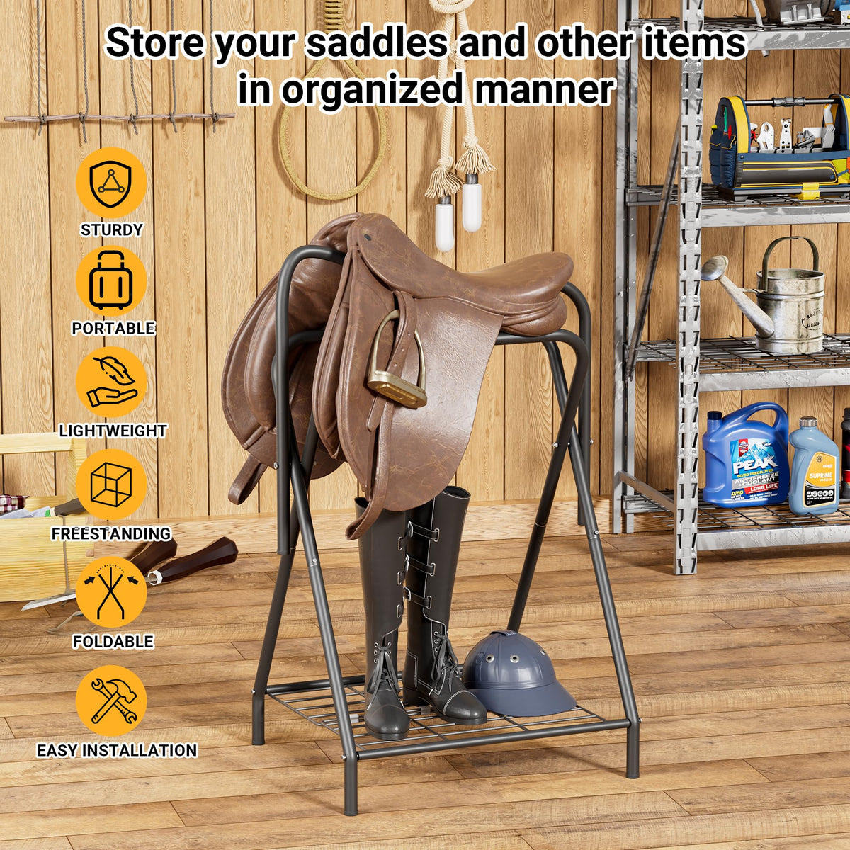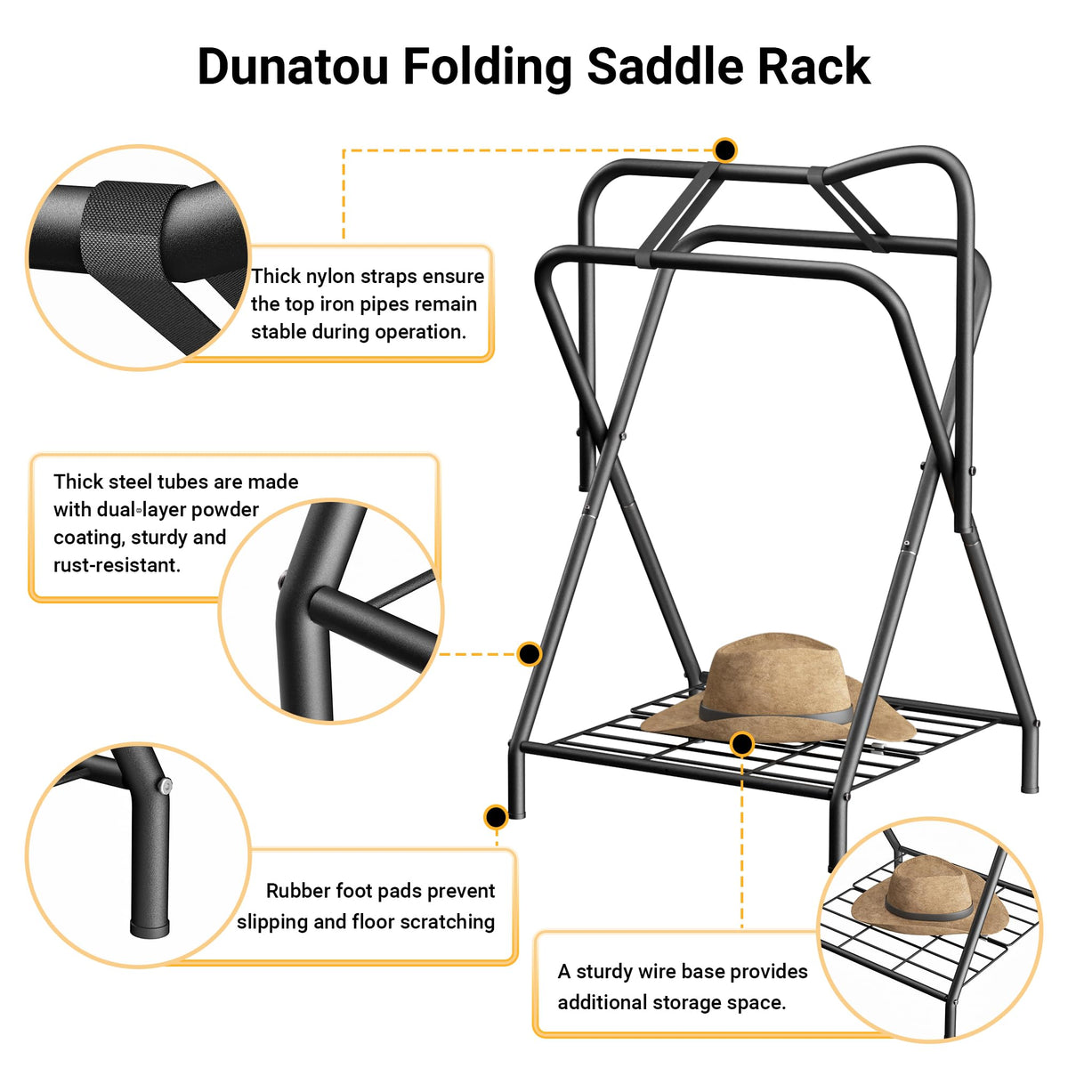 Dunatou Saddle Rack Freestanding Saddle Stand Foldable Horse Saddle Storage Rack Full Size Saddle Pad Rack Horse Blanket Holder Heavy Duty Saddle Holder For English And Western Horse Saddles, Black
