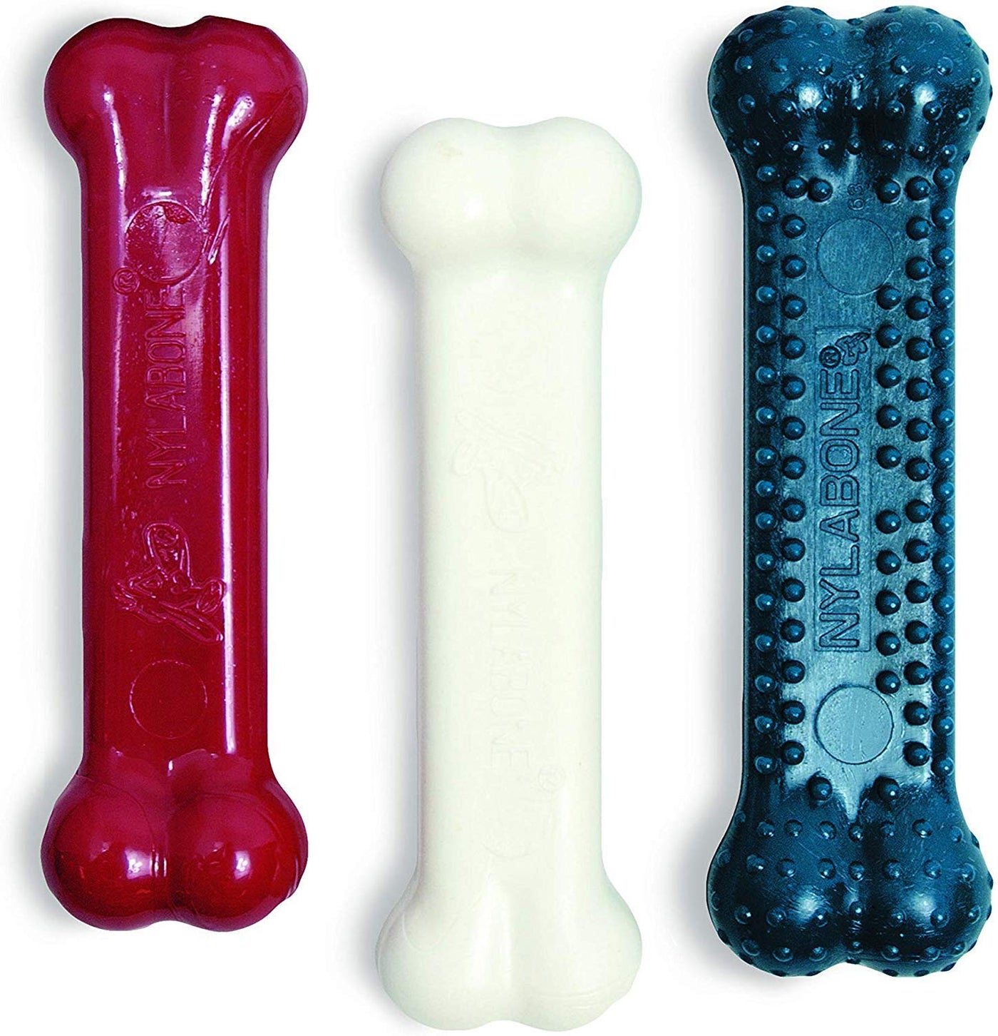 Give Your Dog Something Good To Chew On. This Nylabone Includes Two Durachew Bones And One Dental Chew Bone Per Pack. Made With Tough, Durable Nylon, The Durachew Bone Was Designed For Powerful Chewers And Encourages Positive Chewing Habits. Made For Moderate Chewers, The Dental Chew Bone Has Gently Rounded Dental Nubs That Promote Clean Teeth. Not Recommended For Strong Chewers. Both Chew Toys Have Bristles Raised During Chewing That Help Control Plaque And Tartar Buildup. (Different Dogs Have Different Chewing Styles And Strengths, Even Within The Same Breed, So Be Sure To Choose The Correct Chew Size And Type For Your Dog.)