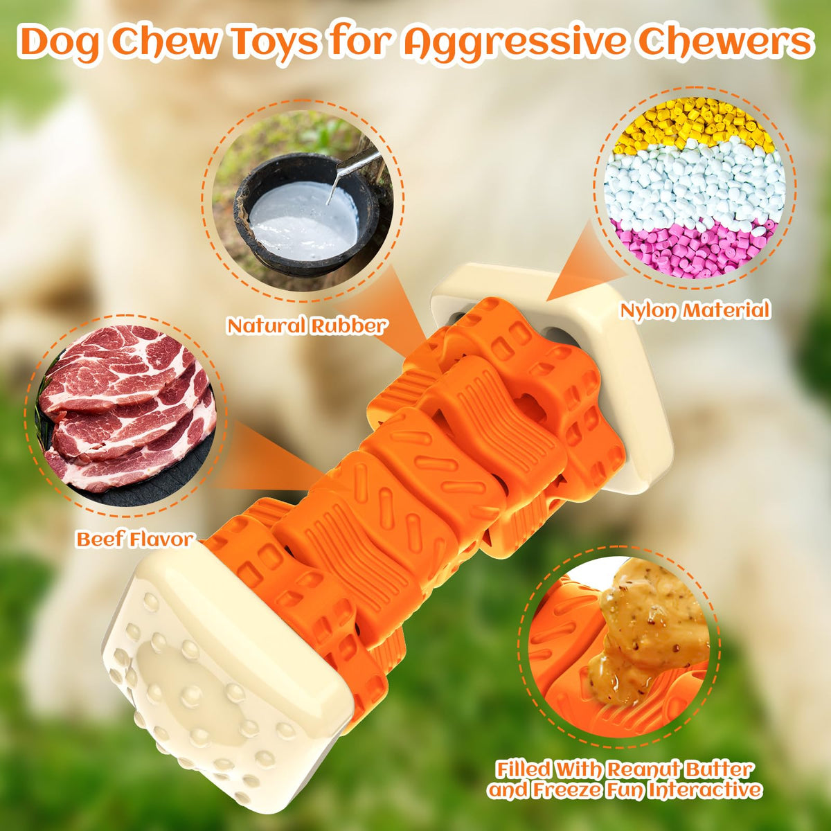 Durable Dog Toys For Aggressive Chewers - Indestructible, Interactive & Enriching Puzzle Toys (Orange, L)