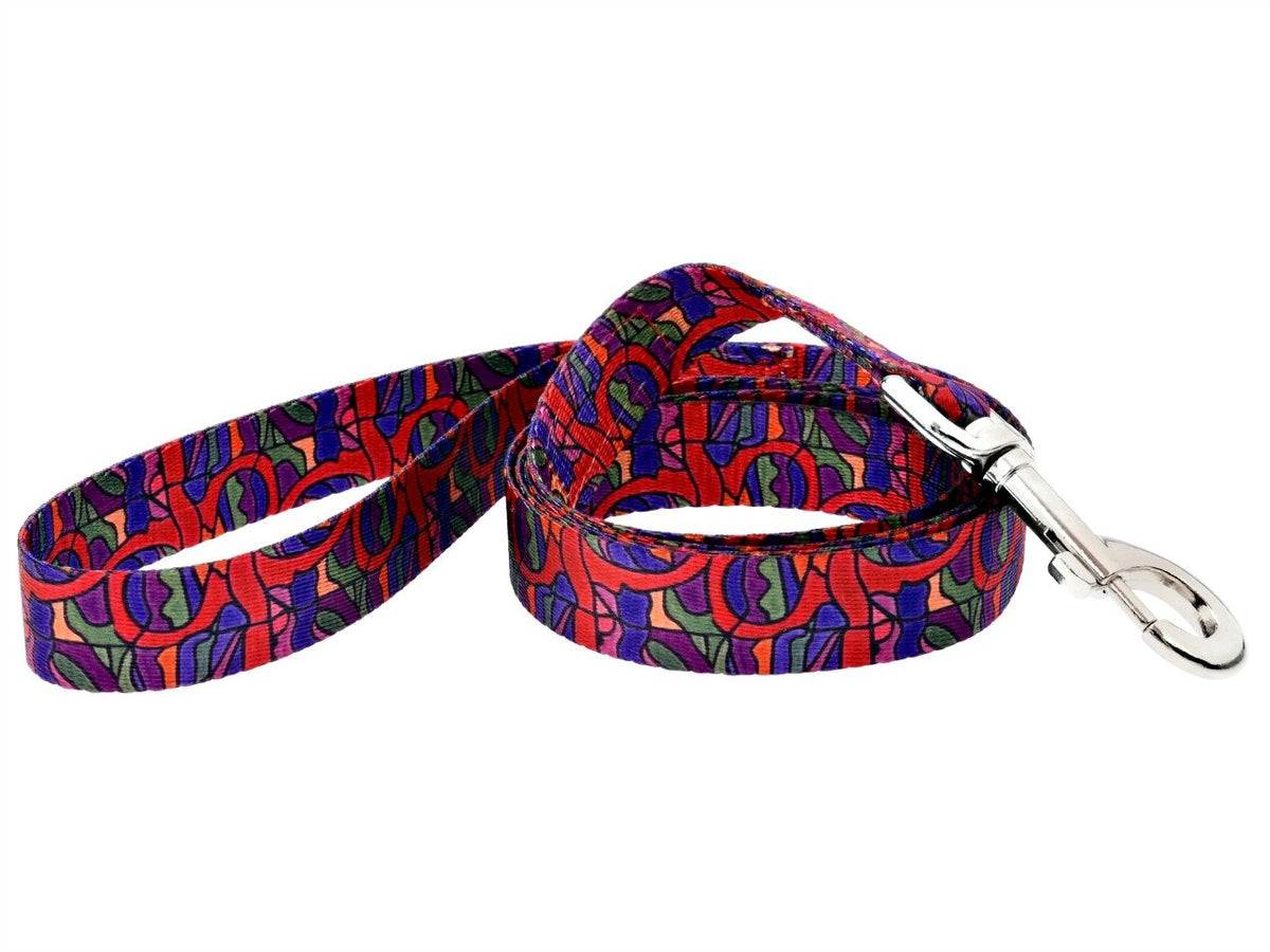 Dutch Dog Amsterdam's Van Heemskerck print non-toxic dog leash made of recycled PET webbing evokes creativity with its use of bold color and shape. The leash is 5-Feet and 1-Inch wide. The PET webbing is softer and lighter than nylon but just as strong and durable. with this leash you and your dog will be the hippest pair on the block.
