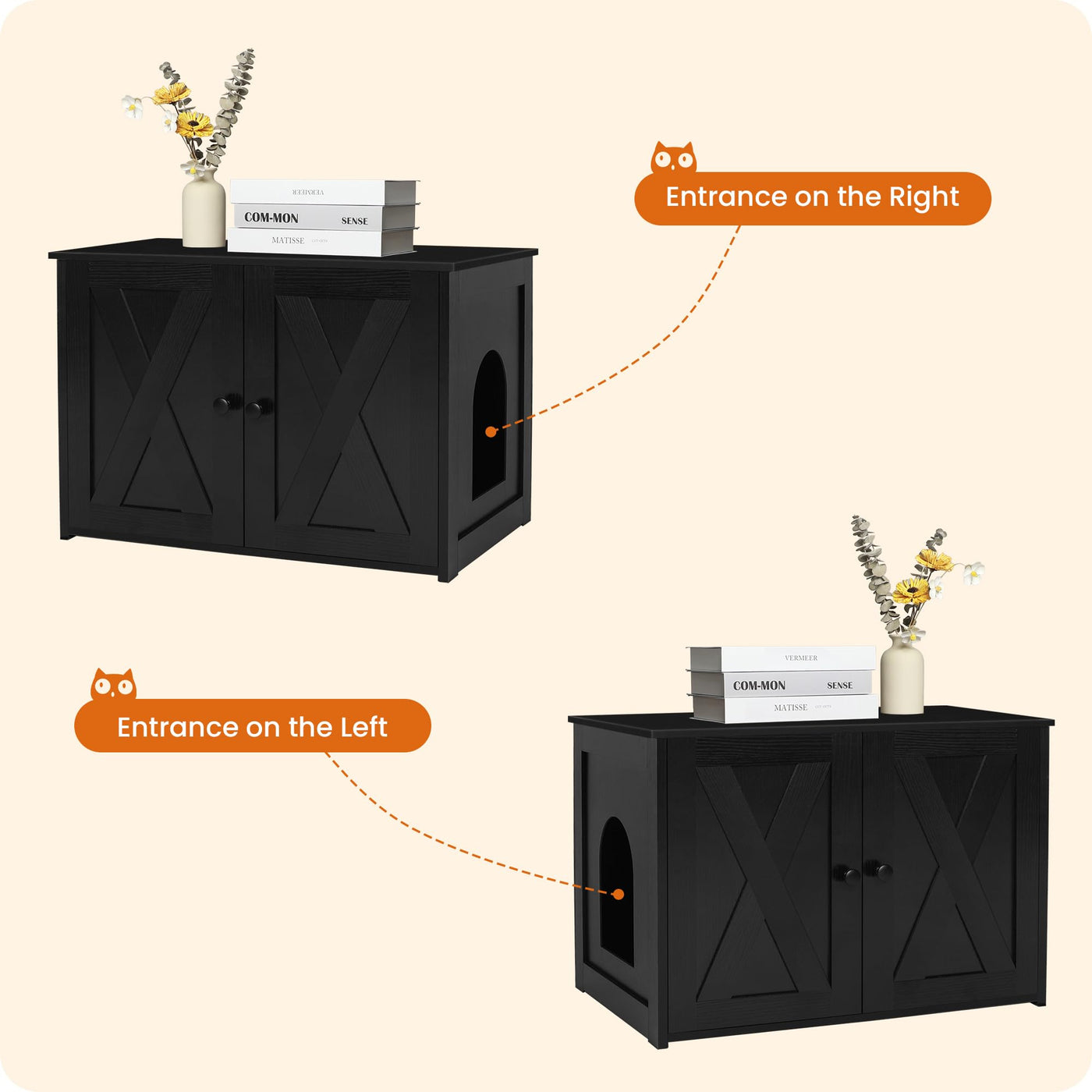 Dwanton Litter Box Enclosure, Cat Litter Box Furniture Hidden, Reversible Entrance Can Be On Left Or Right Side, Wooden Cat Wash