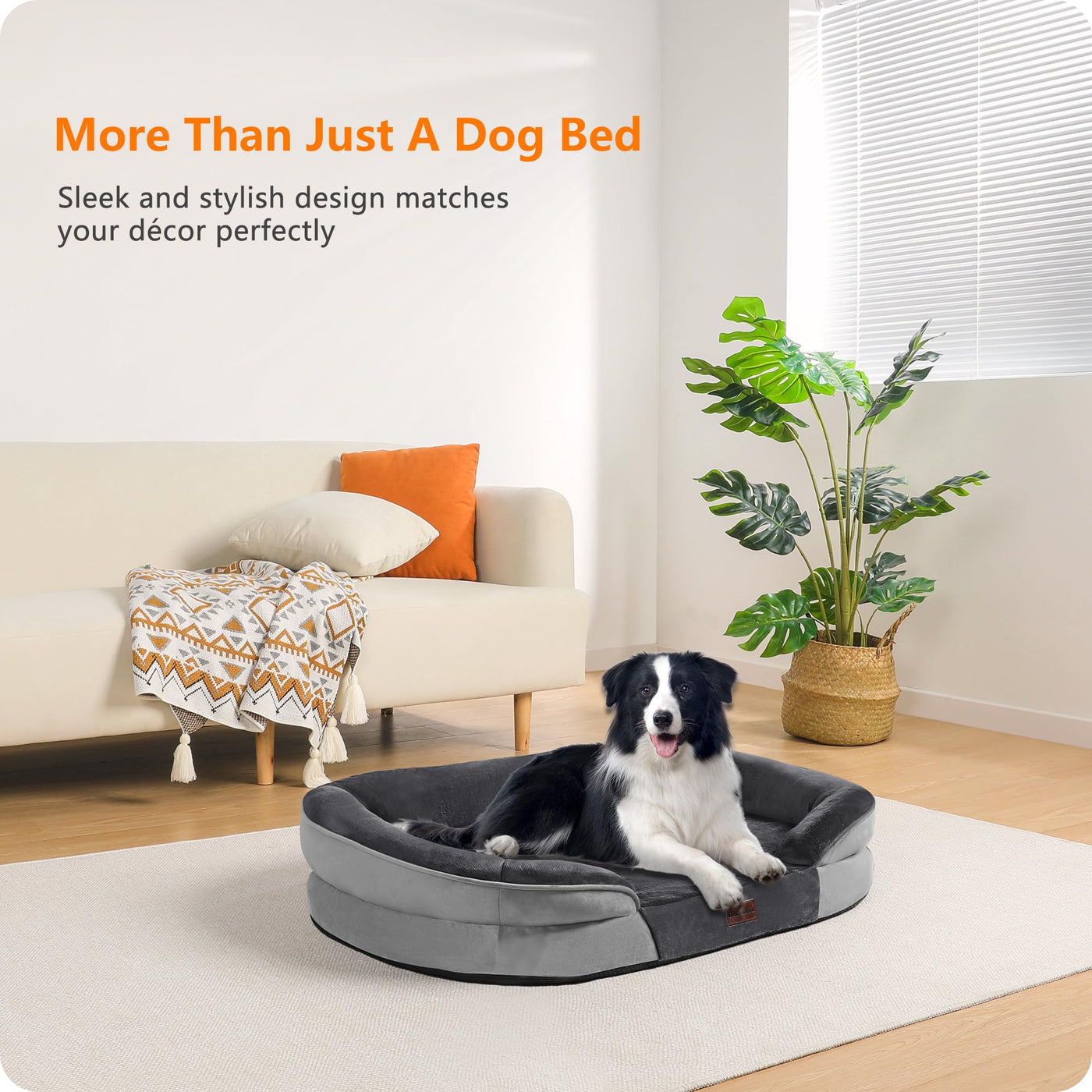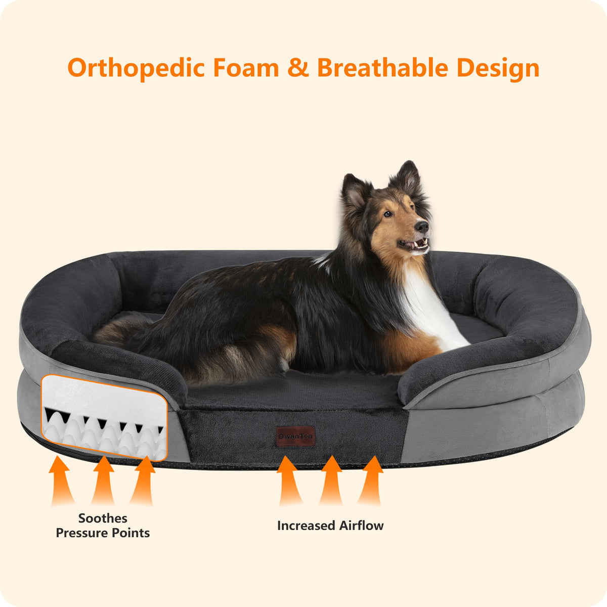 Dwanton Orthopedic Dog Bed For Large Dogs, Waterproof Dog Sofa With Egg Foam Support, Washable Pet Bed With Four Sided Bolster C