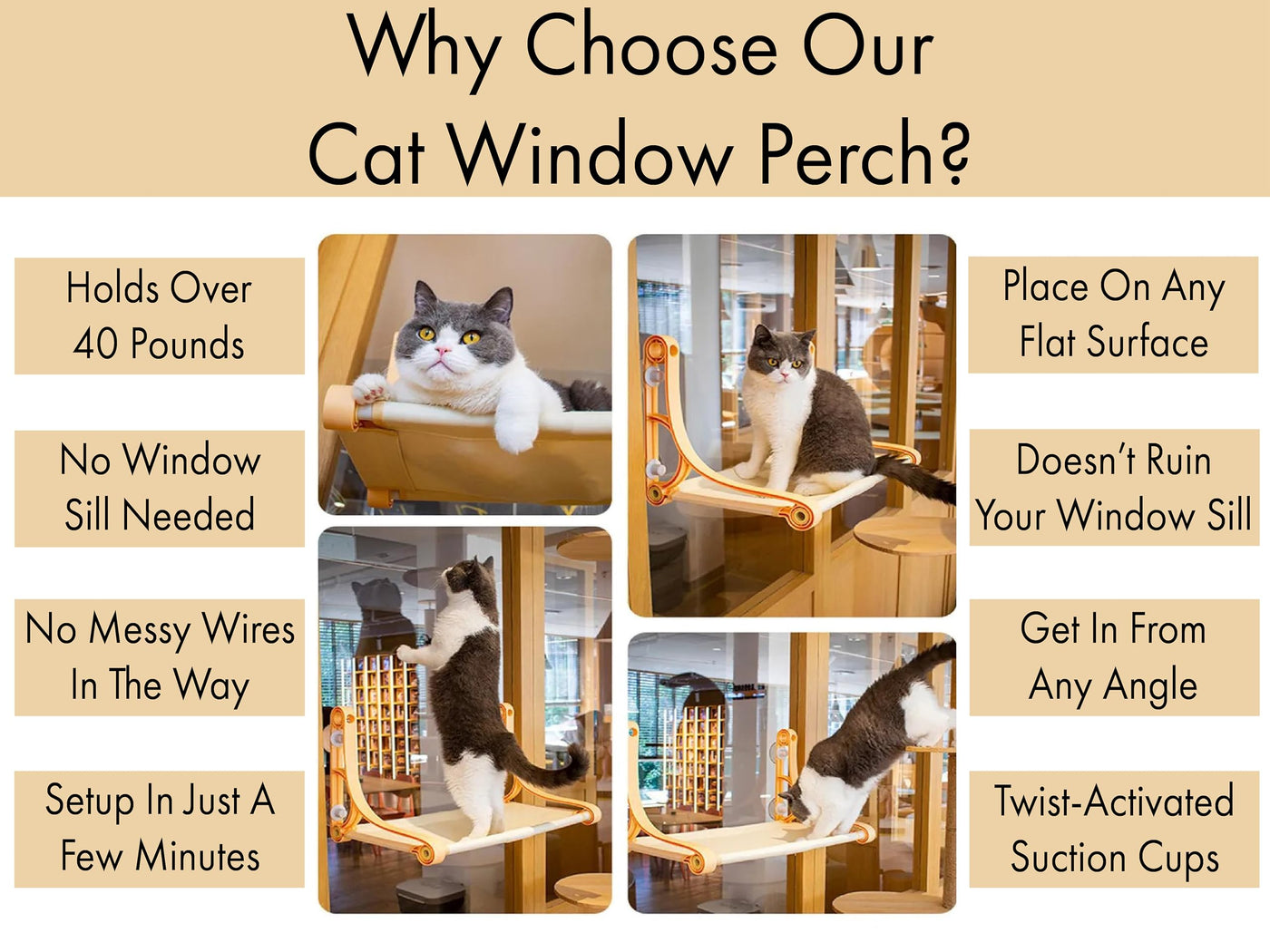The Cat Window Hammock Has Been Included As One Of The Best Cat Accessories For Indoor Cats For The Past Few Years! The Cat Window Perch Is Linked To Better Health For Your Cat Because They Get Better Sleep During The Day, Can Remain Active Watching Outside Activities During Indoor Lounging Hours, And Lets Them Experience The Outdoor World Even If They Are Primarily Indoors! Because Of All Of These Factors, Your Cat Will Be Happier Than Ever! Our Cat Window Shelf Is Proven To Provide All Of These Benefits For Your Cat! With Our Sleek Design, There Are No Wires Blocking Your Cat, So They Are Able To Jump In At Any Angle And Stretch Out As Far As They Want! This Window Perch For Cats Is Incredibly Easy To Setup And Can Be Placed In Just A Few Short Minutes! You'Ll Also Be Able To Close Your Curtains Or Blinds With No Problem! Our Mat Is Also Easy To Remove And Machine Washable! Did We Mention That You Can Put This Cat Window Shelf Anywhere? Don'T Have A Good Window? No Problem! This Cat Window Hammock Can Be Placed On Any Flat Surface! This Means That You Won'T Damage Your Window Sill! Want Your Cat To Have Their Own Bed Next To Yours? Attach The Cat Hammock To Your Bed Frame! Have A Home Office And Want Your Cat To Join You? Stick The Hammock To The Office Door! Turn Your Cat Window Hammock Into A Cat Wall Hammock! No Matter What Size Cat You Have, This Cat Window Perch Is For You! Our Cat Window Shelf Can Hold Over 35 Pounds! We Have Upgraded The Hammock Above Our Competitors By Included Supports That Have Been Measured And Tested To The Highest Efficiency! We Also Have New Twist-Technology Suction Cups That Pull The Air Our Between The Suction Cup And Surface, Creating A Vacuum That Will Hold Any Cat! Digital Wardogs Is Also Committed To Your Happiness! If You Have A Problem, Please Reach Out To Us And We Will Help You To The Best Of Our Abilities! No Matter What Happens, Our Customers Our The First Priority! Each Product Also Comes With A Lifetime Warranty!