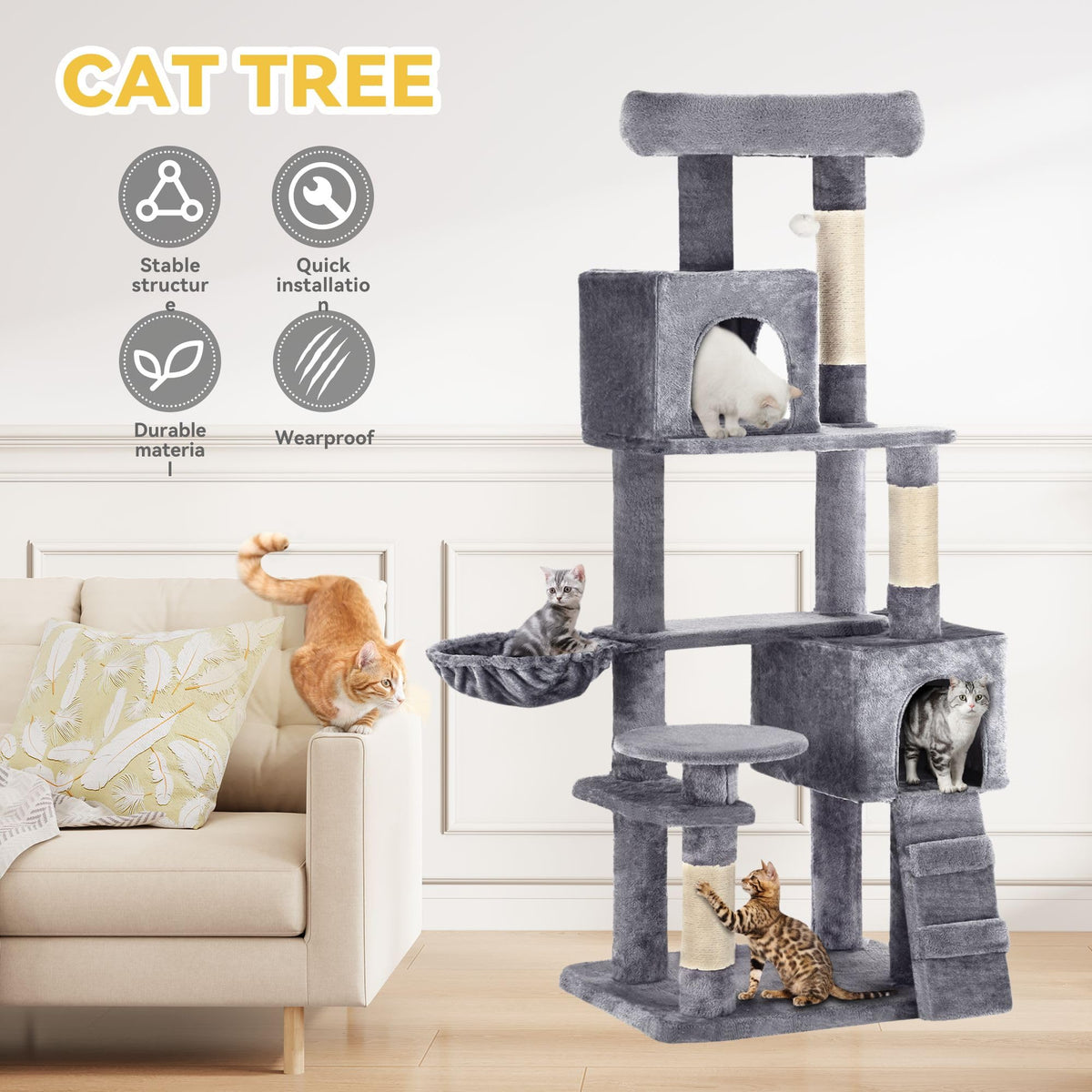 Dwvo Cat Tower 70.8In For Indoor Cats: Multi-Tiered Feline Furnishing With Snug Cat Bed, Scratch Poles, Feline Window Cushioned