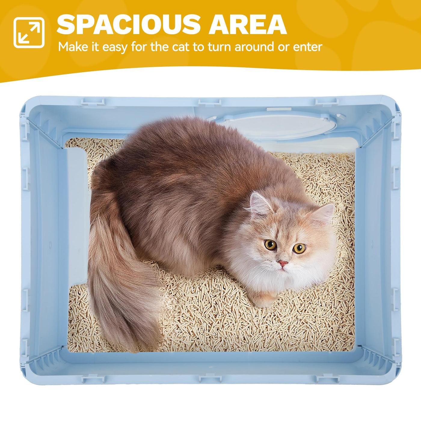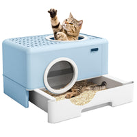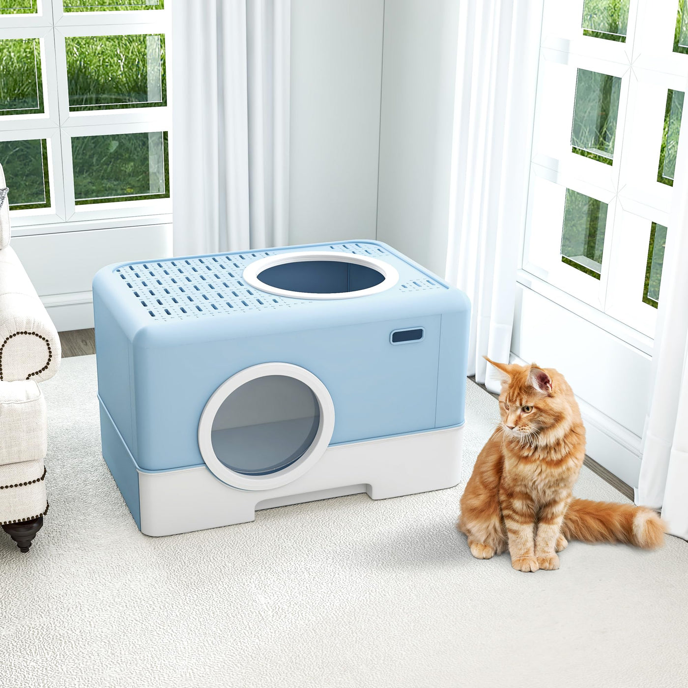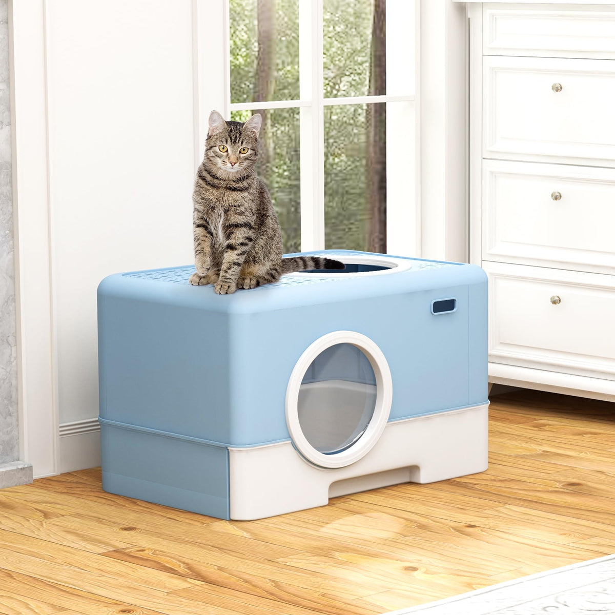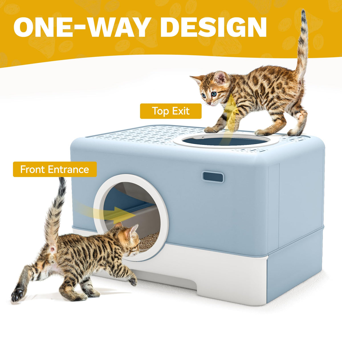 Dwvo Enclosed Cat Litter Box With Two-Way Entry/Exit, Large Hooded Anti-Splash Cat Toilet With Lid, Hidden Litter Scoop - Blue