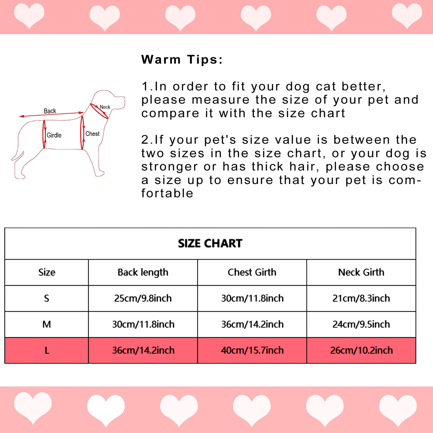 Cold days is coming, do you have prepared winter clothes for your furry friends? If have not yet, our dog winter sweater is a perfect gift for your dog Specification: Material: Acrylic yarn Color: Red Size: Size S: Back Length 25cm/9.8inch, Chest Girth 30cm/11.8inch, Neck Girth 21cm/8.3inch Size M: Back Length 30cm/11.8inch, Chest Girth 36cm/14.2inch, Neck Girth 24cm/9.5inch Size L: Back Length 36cm/14.2inch, Chest Girth 40cm/15.7inch, Neck Girth 26cm/10.2inch Package Includes: 1 x Dog Heart Sweater Warm Tips: 1. Please allow 1-2 cm difference due to a manual measurement. 2. The color might exist slightly difference due to different displays.